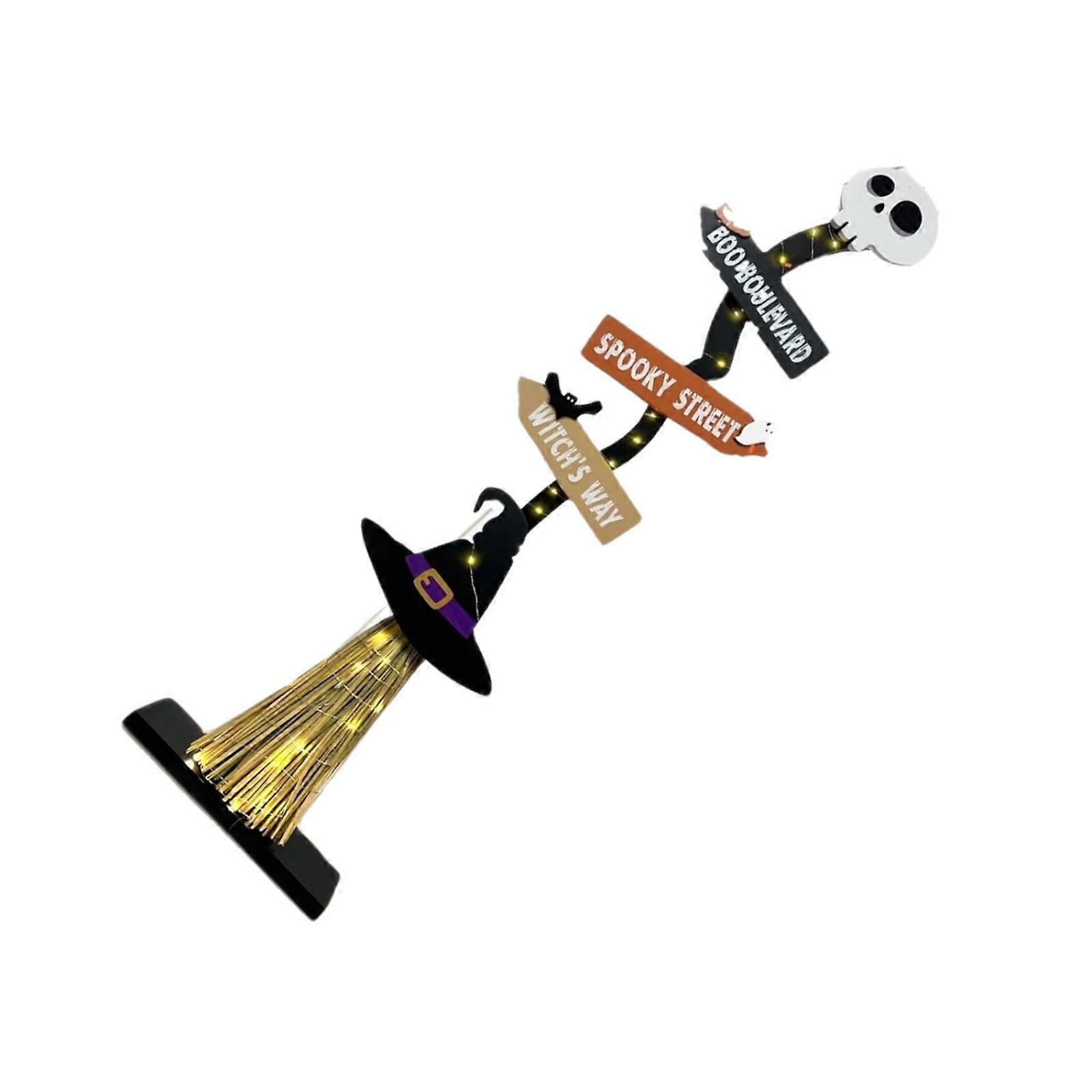 Halloween Witches Broomsticks Decoration Sign Lighted Wooden Witch’s Broom for Outdoor Indoor Porch Yard Halloween Decors Multicolor