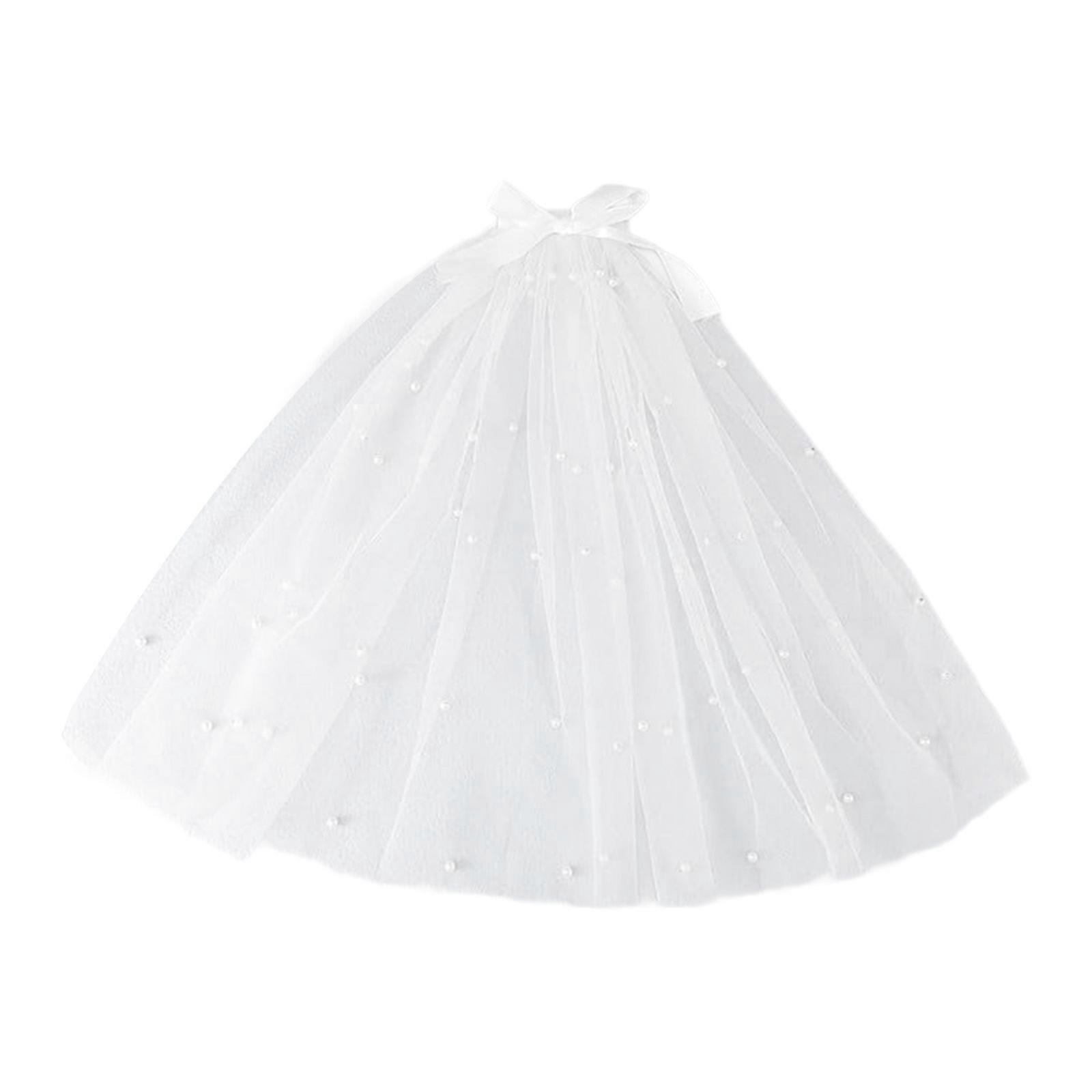 Girls Pearls Bridal Veils for Girls Studded Pearls Bridal Veils Detail for Evening Dinner Dress Stylish Outfits White