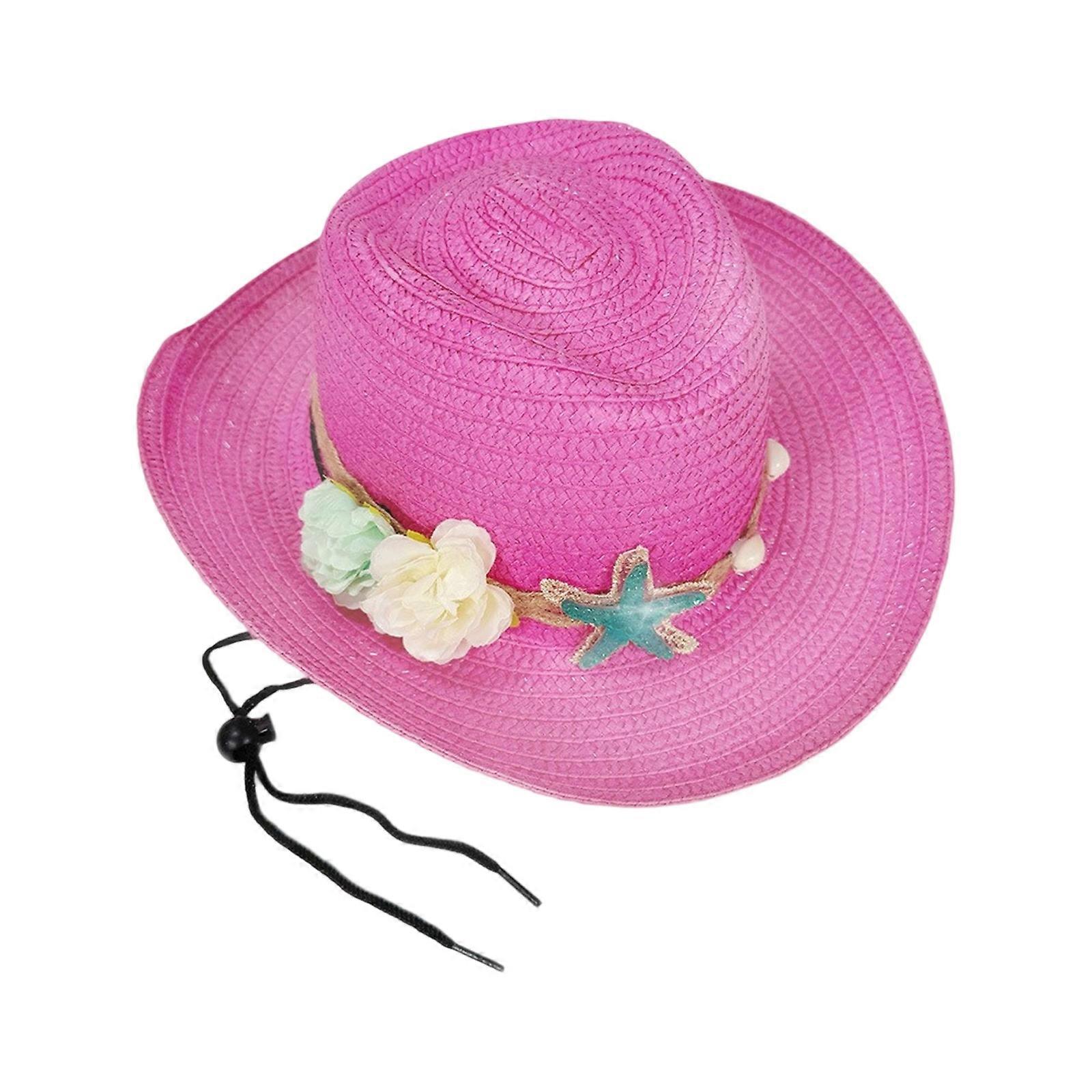 Adjustable Kids Beach Straw Hat Natural Woven Windproof Sun Hat For Seaside Picnics Sandcastle Building Children Props Pink