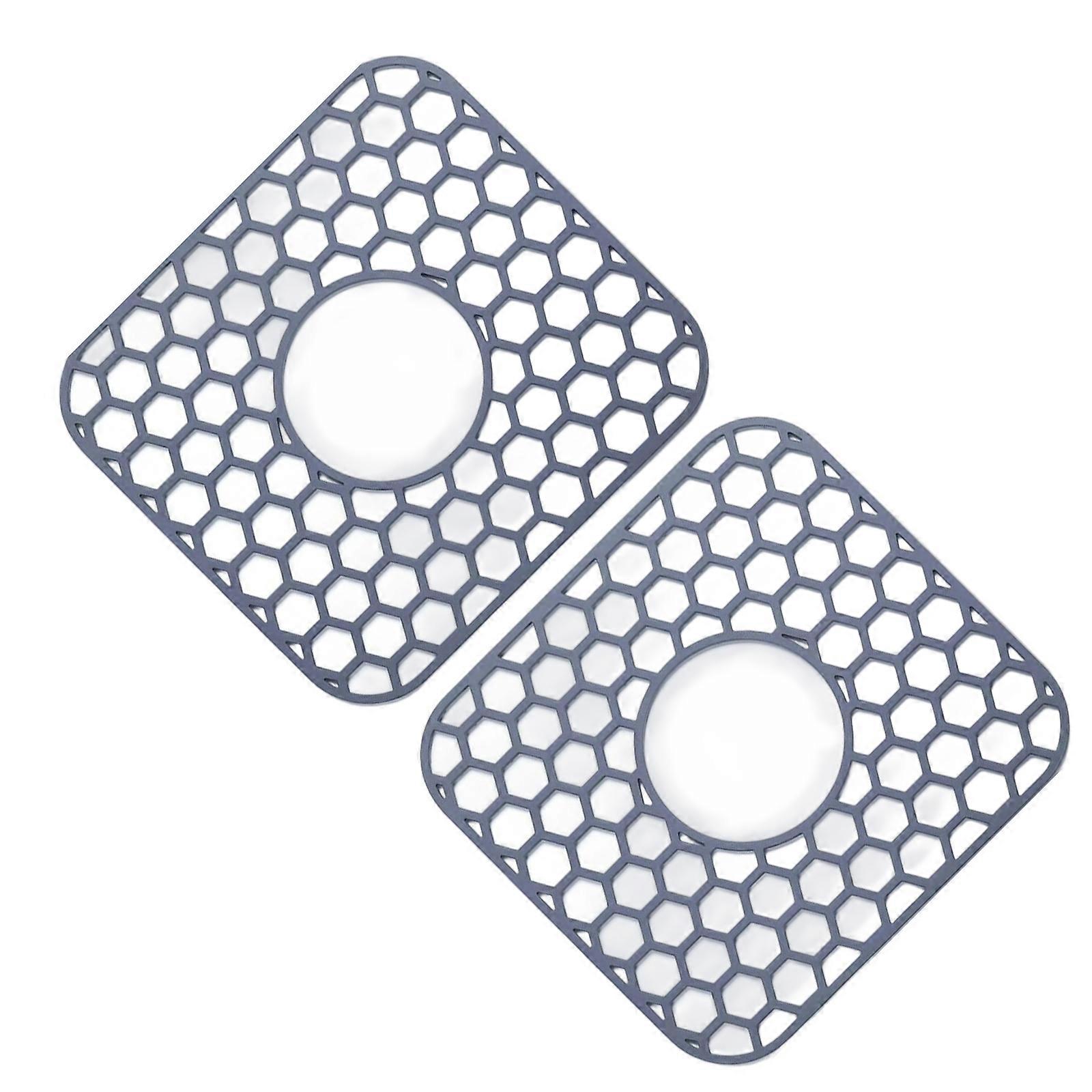 2Pcs Heat Resistant Silicones Sink Protectors Mat with Center Drain For Kitchen Dishwasher Safe Nonslip Draining Pad Multicolor