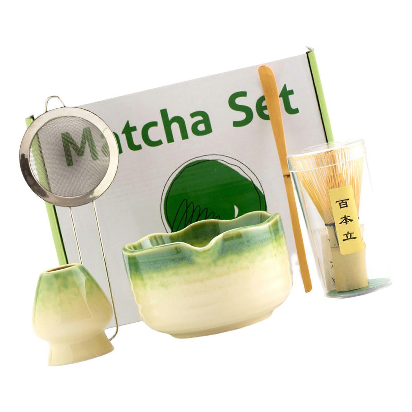 Professional Matcha Making Set 5pc Bamboos Whisk Scoops Steel Sifter Teas Ceremony Tool With Ceramics Bowl Accessories Multicolor