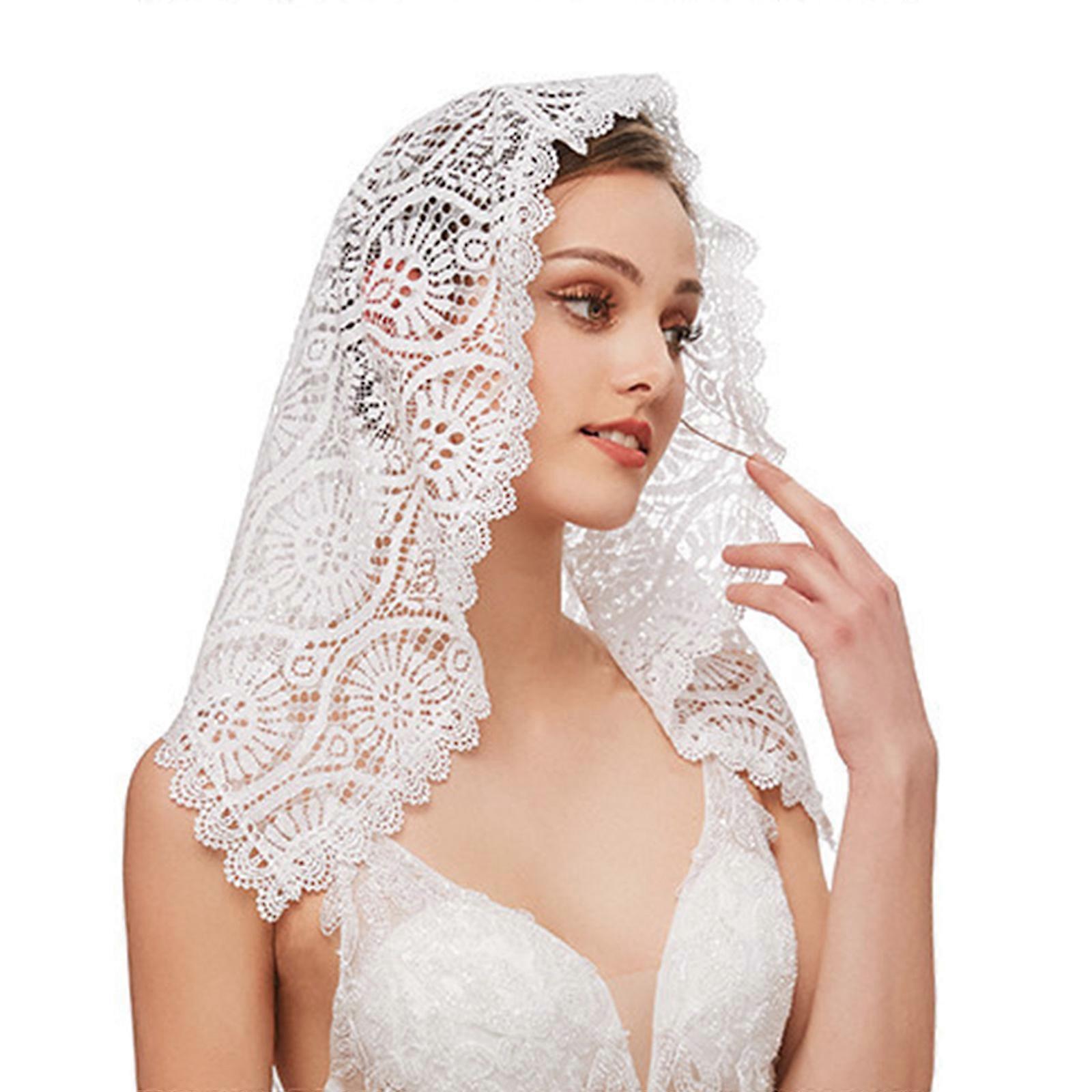 Elegant Lace Mantilla Bride Head Scarf With Cutout Design For Wedding Ceremonies And Special Occasion Church Headpiece White
