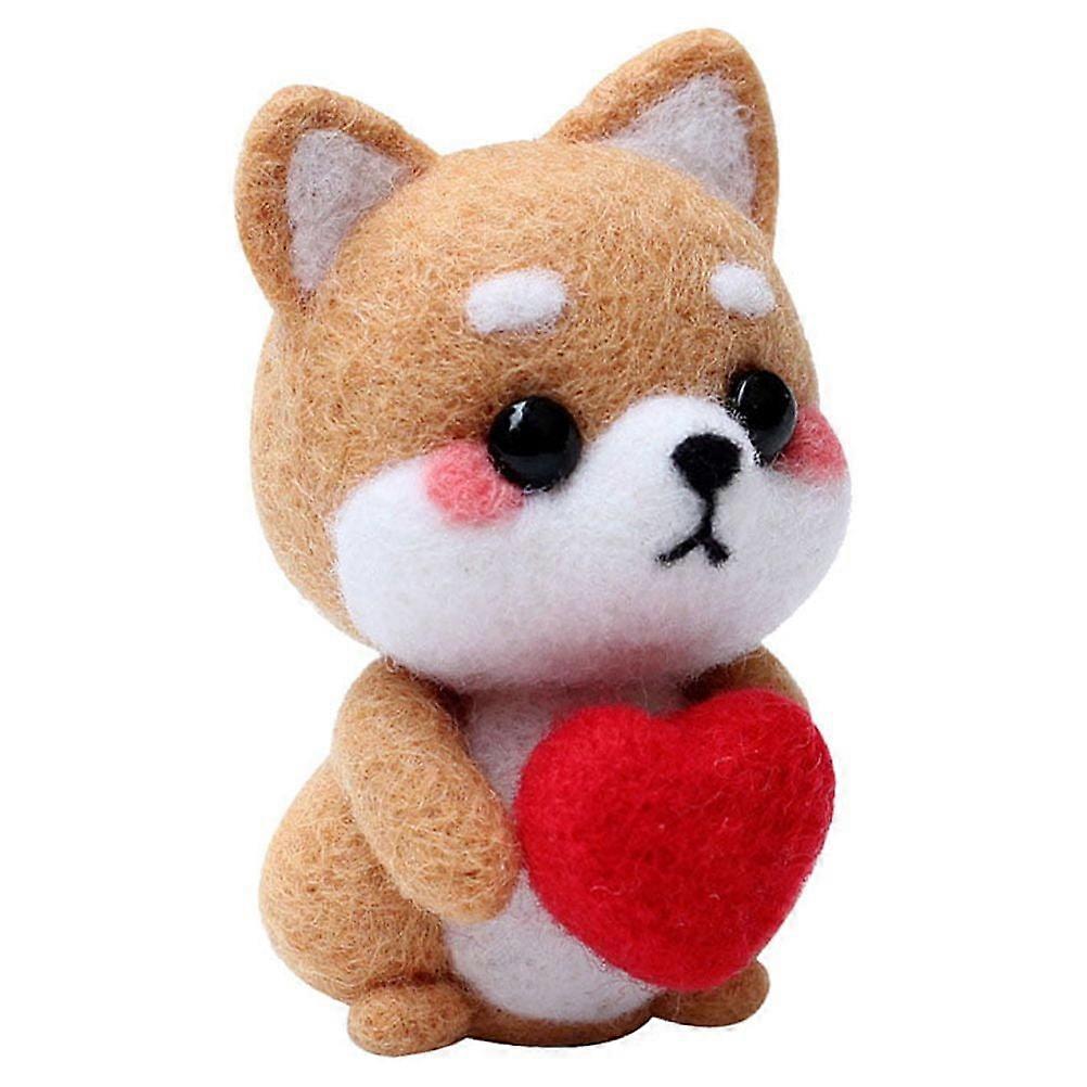 Cartoon Sitting Dog Plush Doll DIY Needle Felting Kit Wool Felting Supplies DIY Art Carft for Home Kids Adults Gift (Cute Heart Akita)