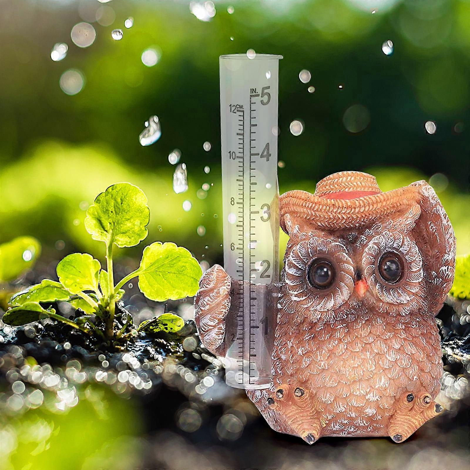 YiFudd Owl Rain Gauge Decorative Ornaments Garden Water Meter With Metering Tube