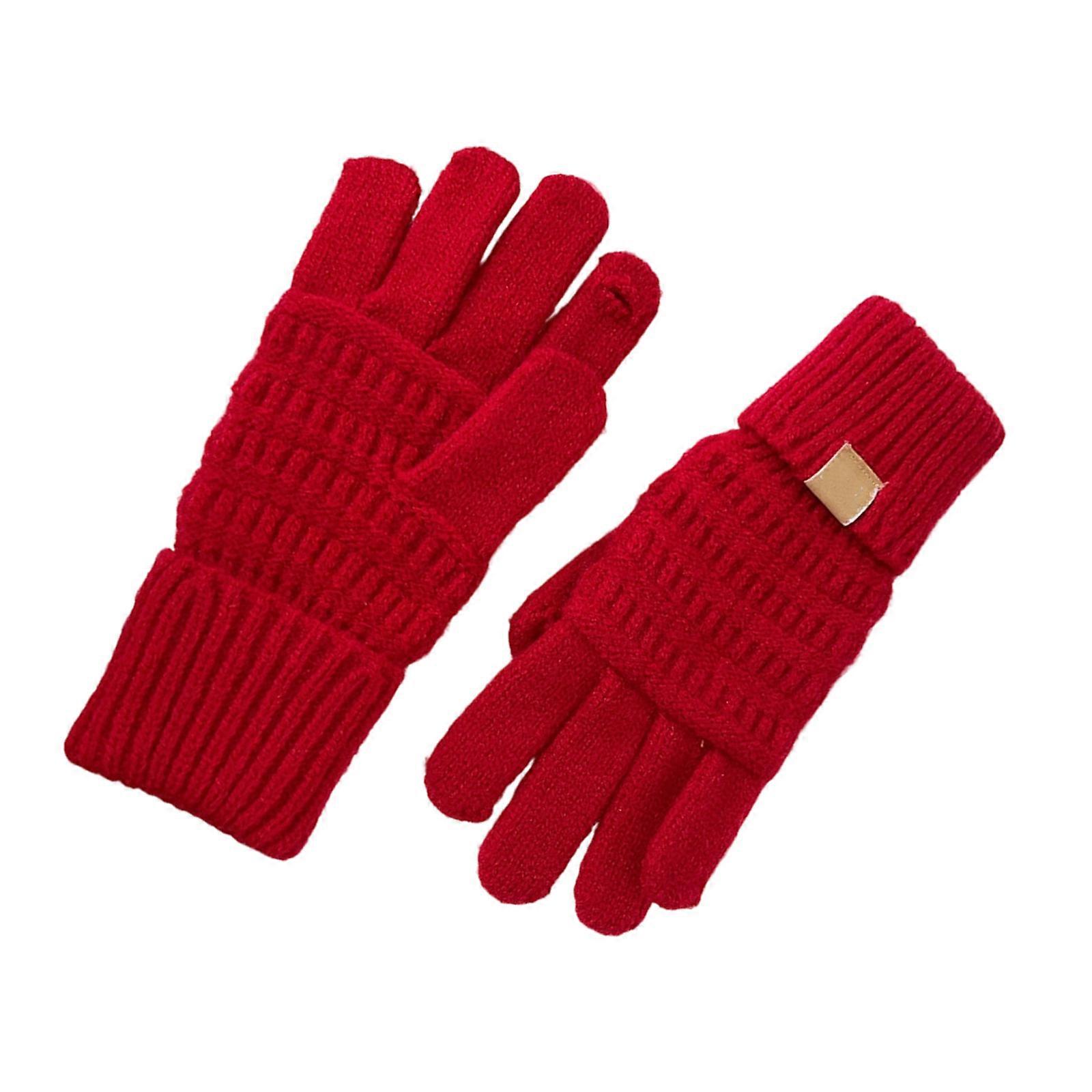 Knit Lovely Mitten Soft Plush Gloves Students Wrist Cuffs Detail for Children and Women Winter Photo Props Red OS