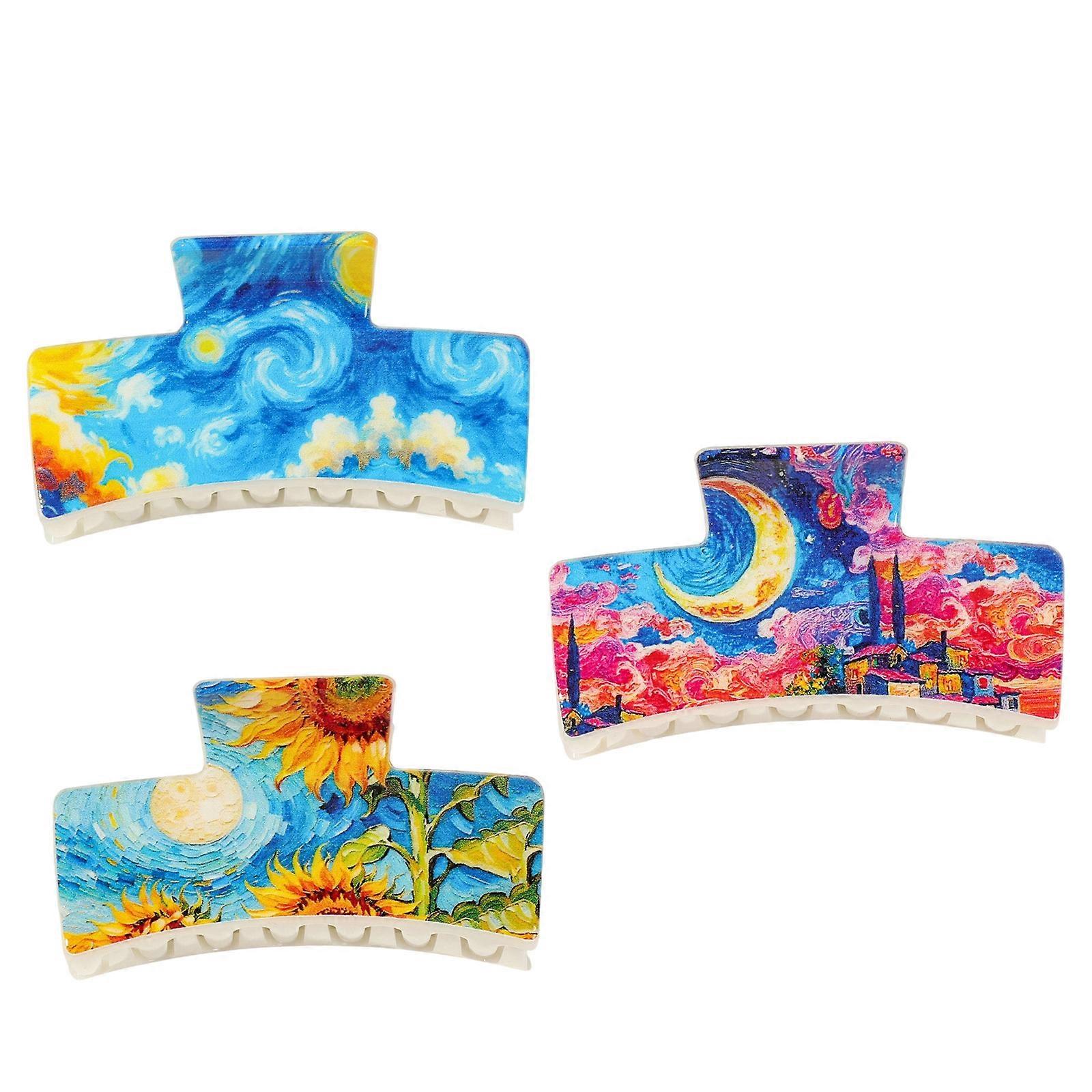 Set of 3PCS Modernist Hair Clip Square Shape Hair Accessories Oil Painting Art Design Secure Grip Hair Claw Headdress Multicolor