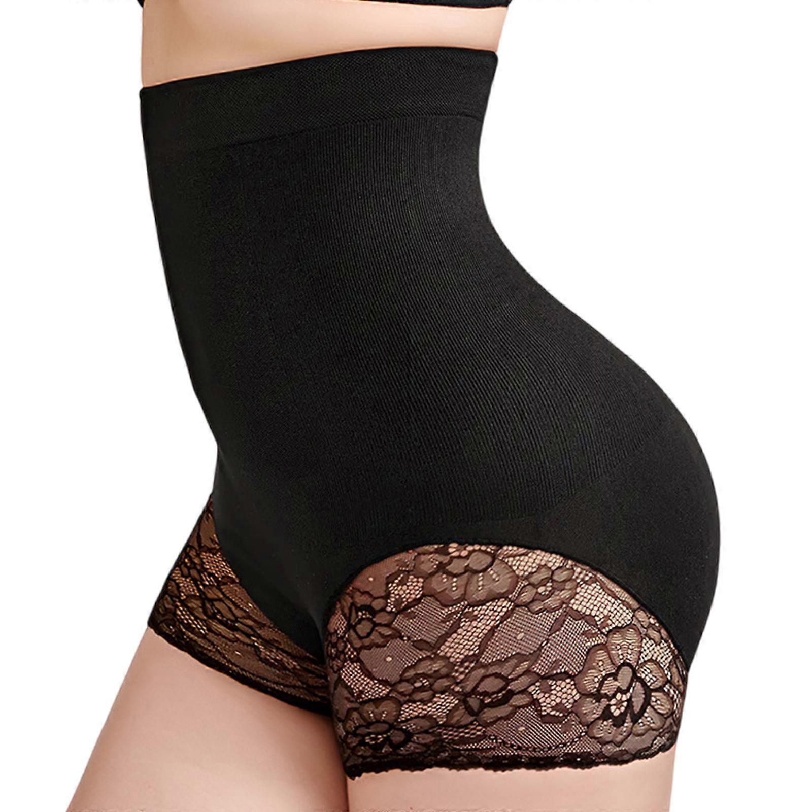Women's Lace Trimmed Shapewear Shorts High Elastic Waistband Panties Abdomen Control Briefs For Under Tight Clothing Black XL XXL