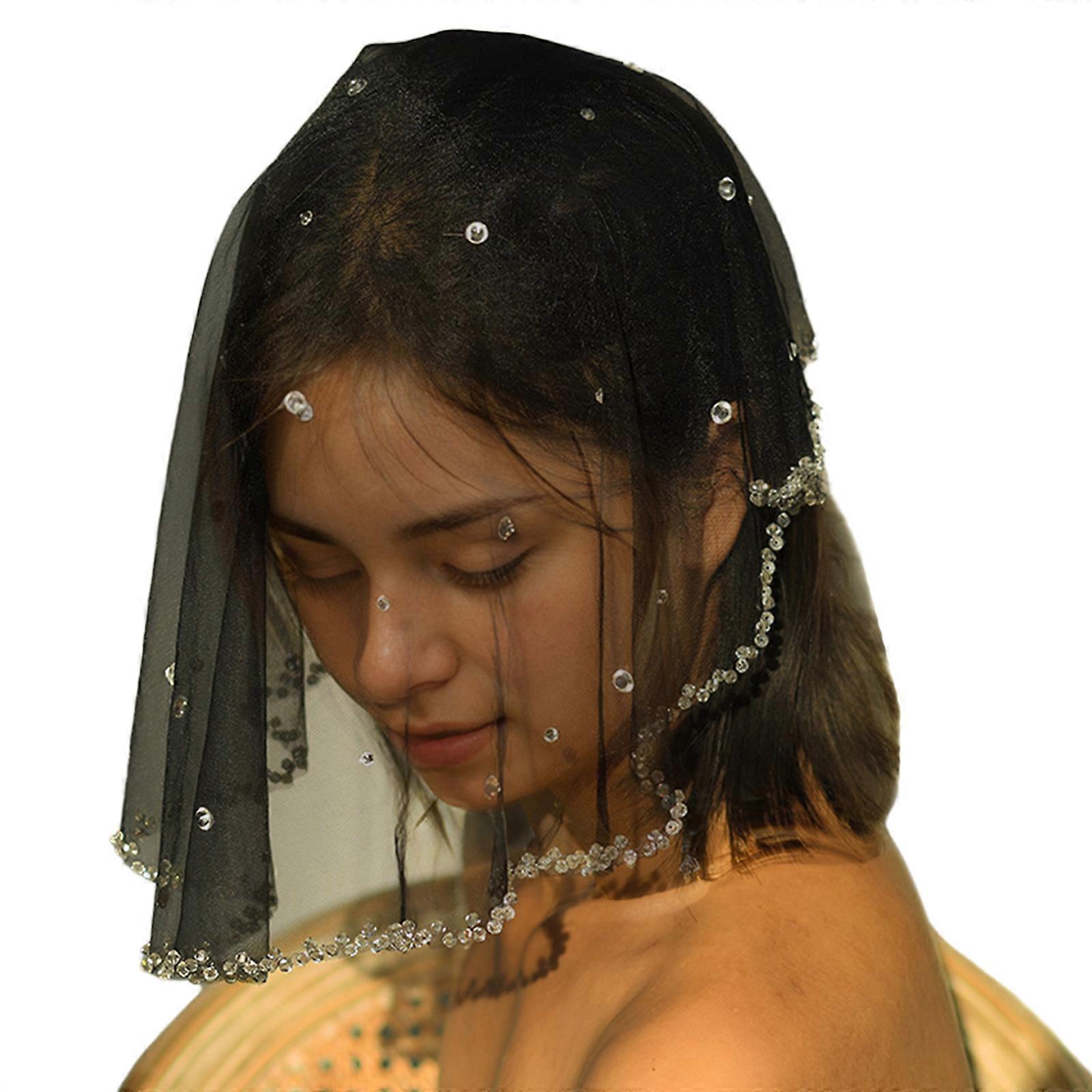 Elegant Bridal Hair Accessory With Crystal Studds Short Facecover Head Veil For Wedding Ceremonies And Special Event Black