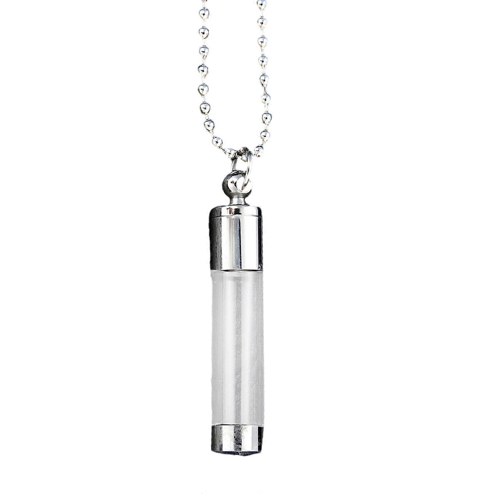 Features: This 10mm perfume vial pendant necklace combines portability with functionality, featuring a leak proof stainless steel design perfect for carrying your favorite fragrances or essential on the go. Crafted from sturdy stainless steel, the compact charm necklace boasts a secure screw top closure to prevent spills while offering a sleek, minimalist aesthetic for everyday wear. Ideal for fashion forward travelers and active professionals seeking practical jewelry, the double purpose accessory appeals to minimalist jewelry lovers who value style meets utility. Keep freshness throughout busy days – wear it to offices, gym, or weekends adventures as a discreet perfume carriers that complements both casual outfits and formal attire. Elevates your accessory game with this versatile stainless steel charm necklace, blending discreet storage capacity with contemporary elegances for seamless day to night transitions. Specifications: Material: Stainless Steel Pills Jar Size:Approx.1x5cm/0.39x1.96inches Chain Length:Approx.60cm/23.62inches Color:Steel Package Includes: 1Pc Perfume Bottle Medicine Jar Pendant Necklace note: 1.Please allow 1-2cm errors due to manual measurement, making sure that you will not mind before order. 2.Due to the differences between different monitors, the picture may not reflect the actual color.