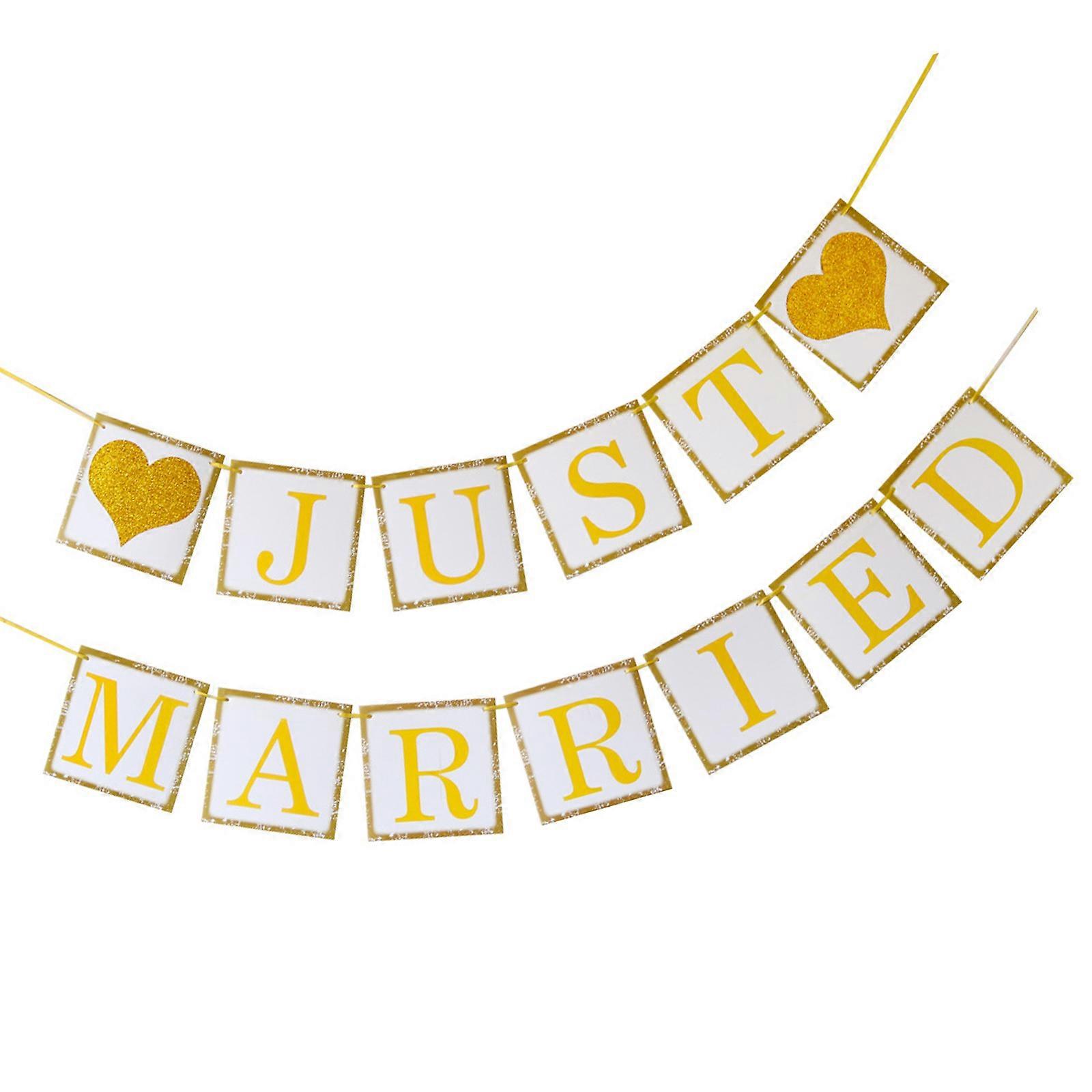 Just Married Bunting Banners Wedding Decoration Shimmering Glitter Accents Photo Booth Backdrop Supplies Multicolor