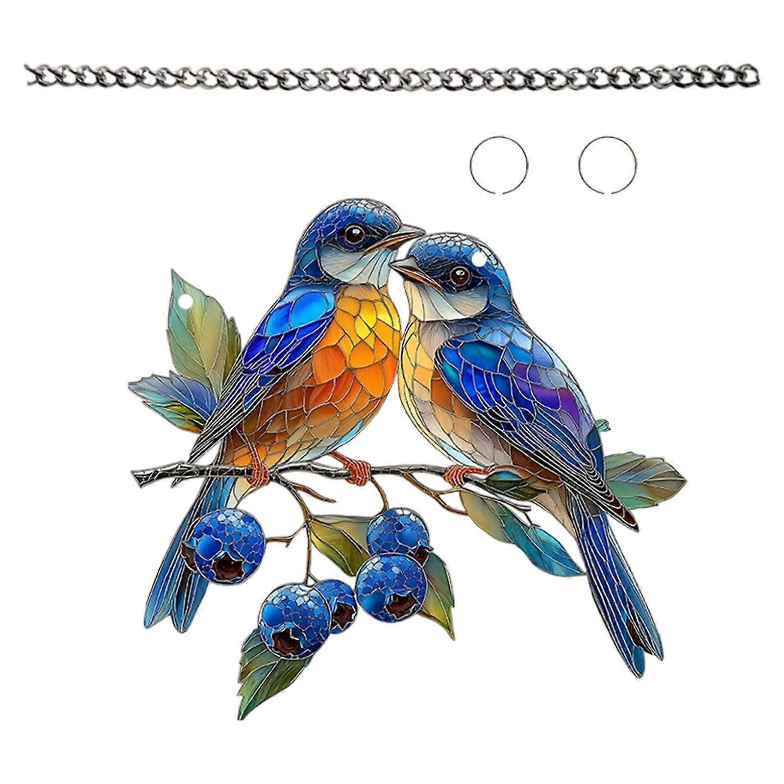 Stained Acrylic Wall Art 2D Colorful Bird Design Window Hanging Ornament Home Office Store Decoration Compacts Size Multicolor