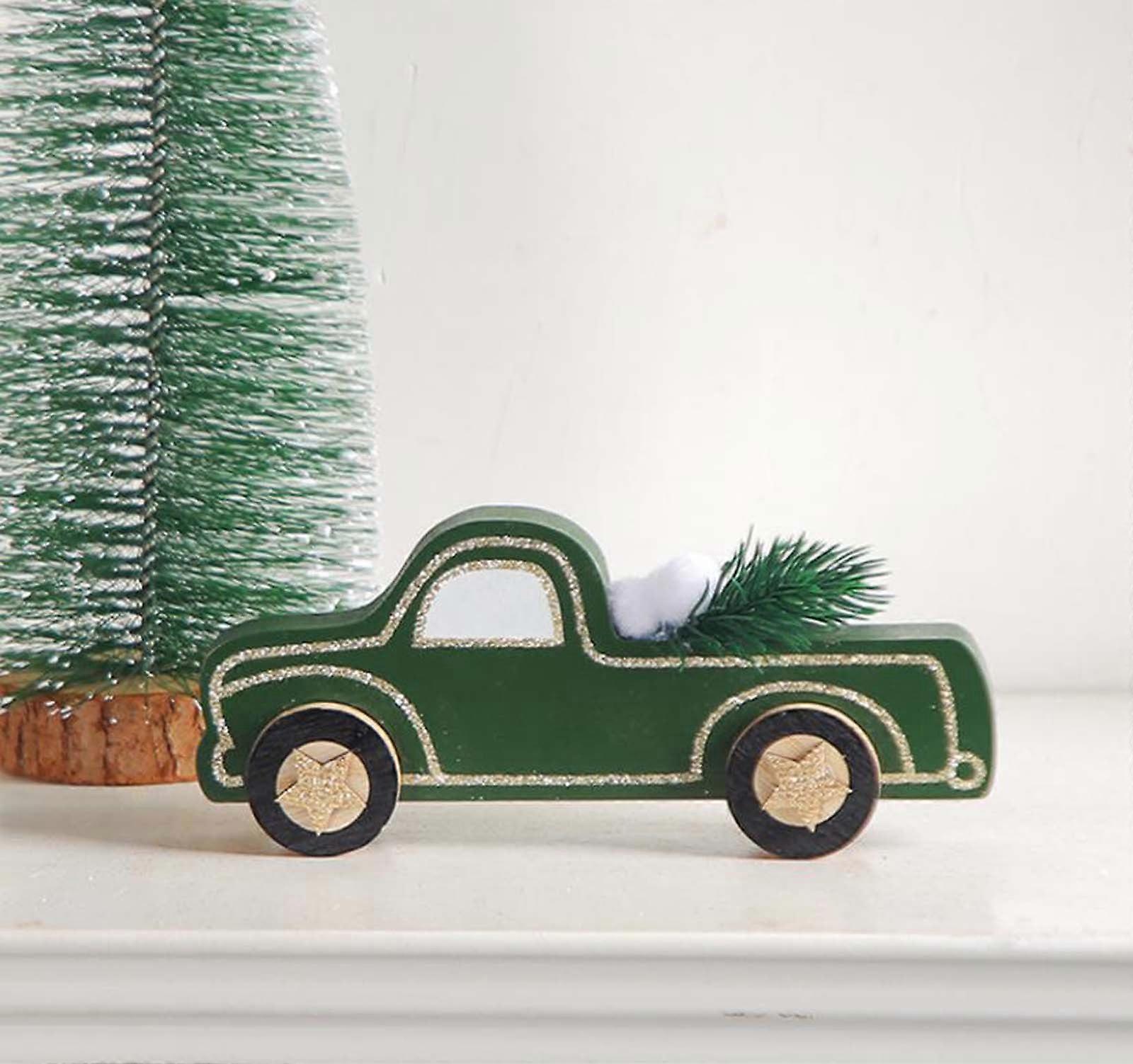 Christmas Clearance! Dark Green Wooden Car Ornament, Compatible with WJSXC, Holiday Decor Deal