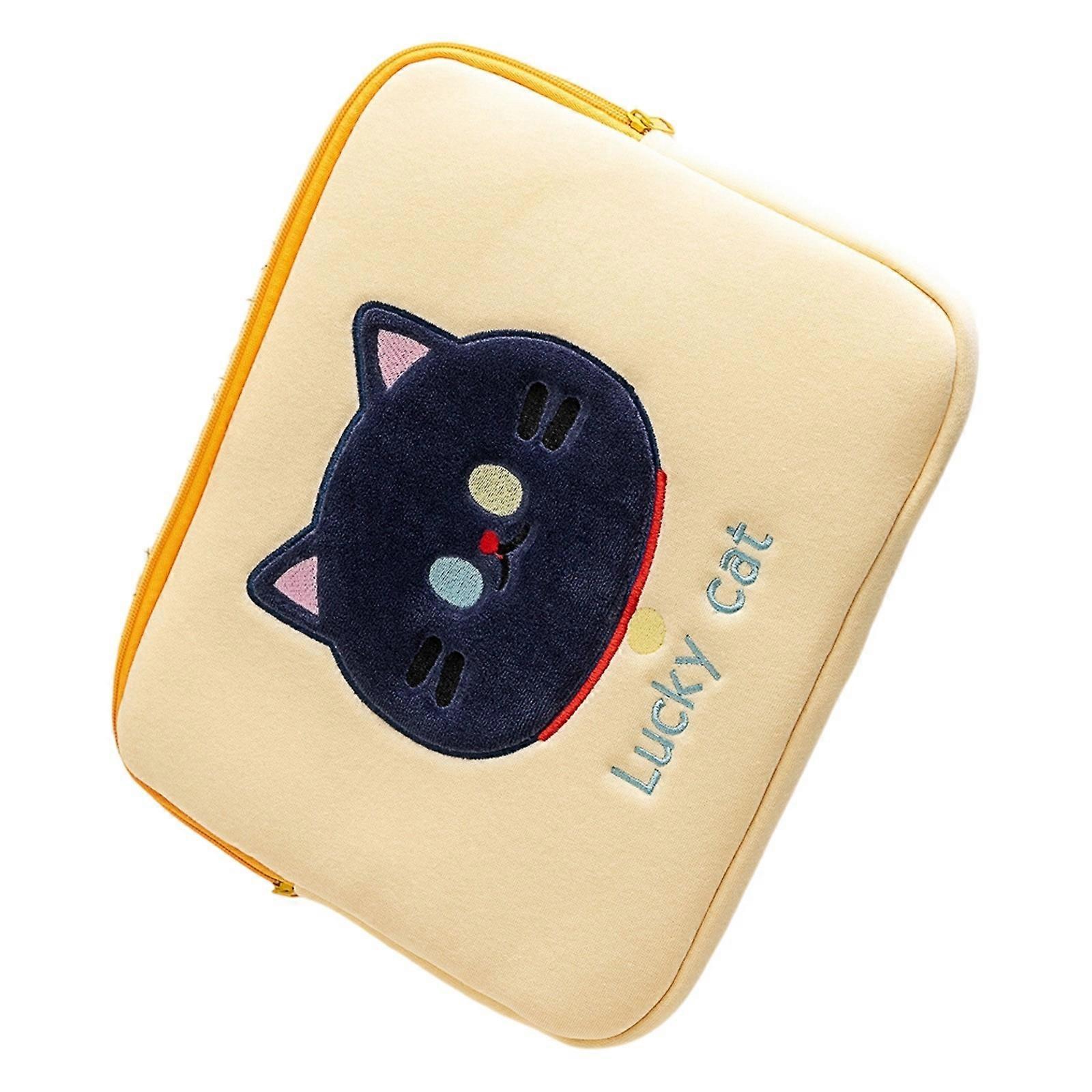 Travel Friendly Tablets Organizing Bag Cute Cartoon Kitten Design Waterproof Protective Sleeve Yellow 15-inch