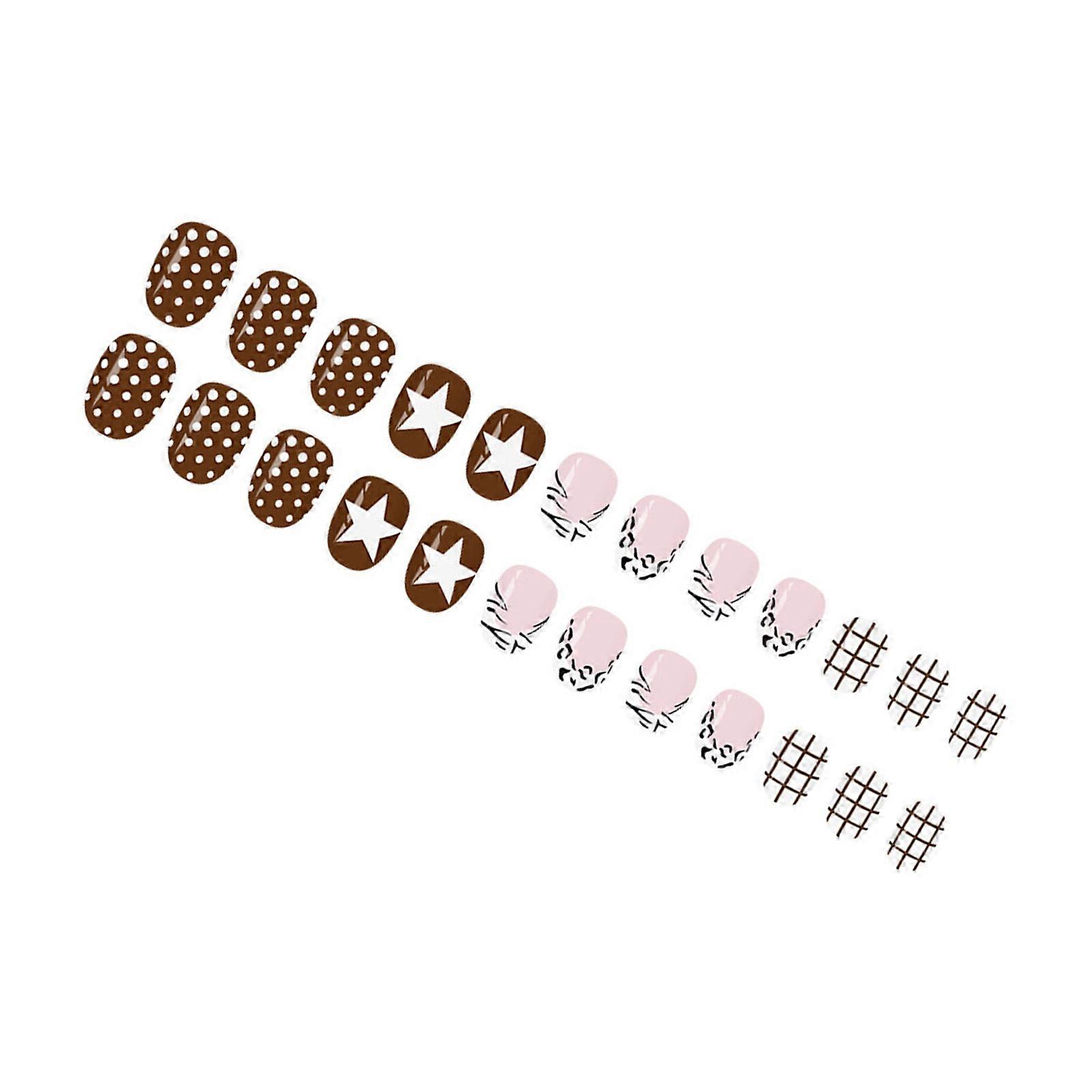 24PCs Mix Pattern False Nail French Leopard Geometric Stars Coffee Tone ABS Material Quick Stick Nail Accessories Multicolor