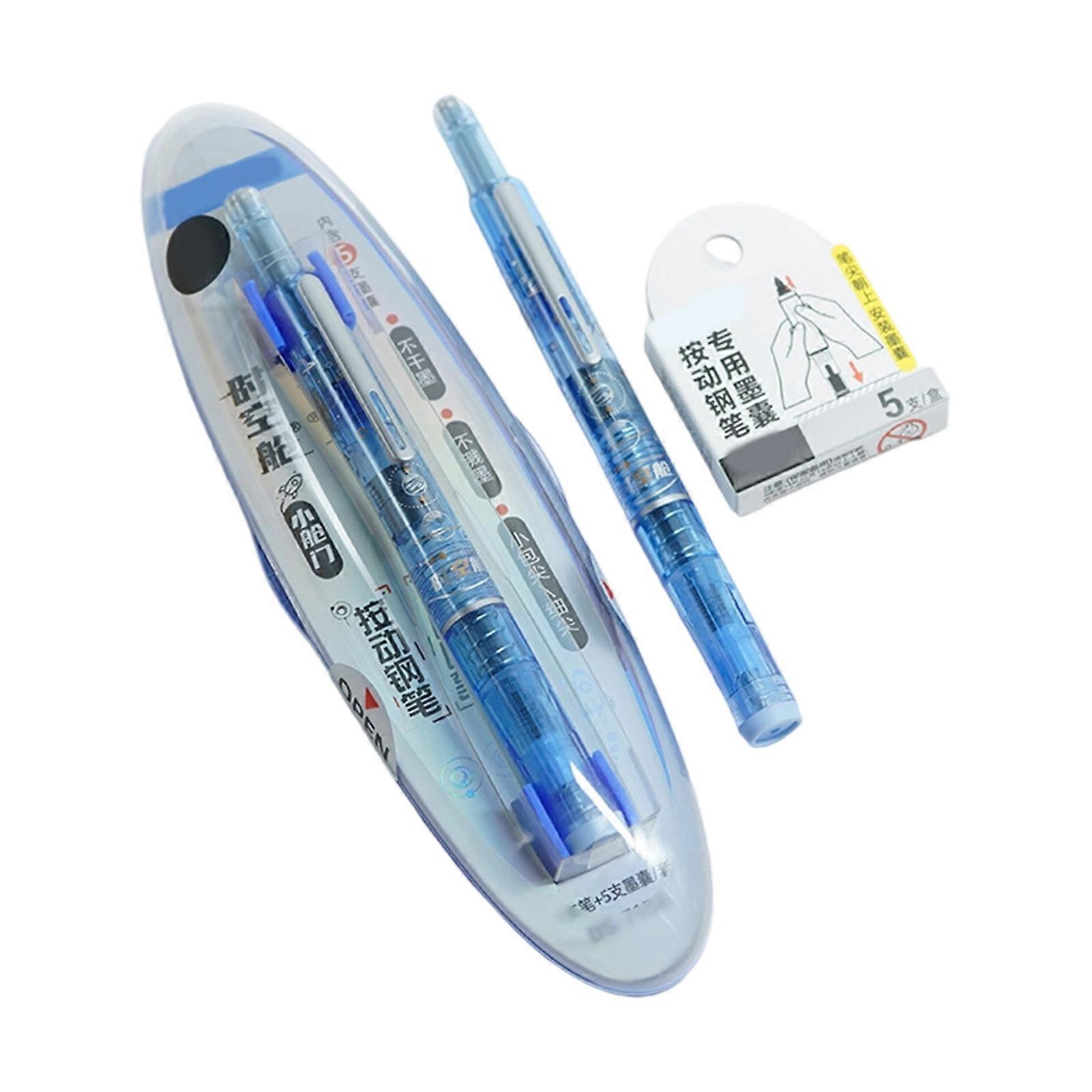 Retractable Calligraphy Fountain Pen with 5 Inks Cartridges Retractable Inks Pen for Adult Kid Journaling Handwriting Multicolor
