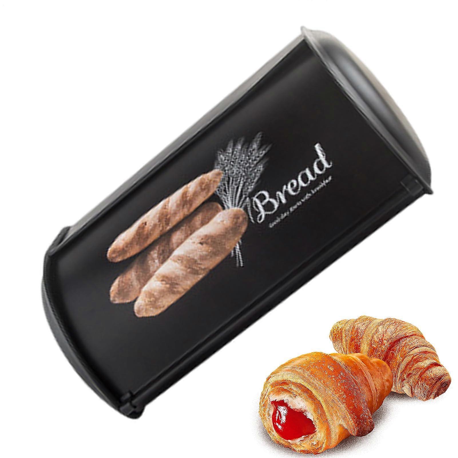 Bread Box with Roll Lid for Kitchen Countertop, Farmhouse Cake and Bread Storage Bin, Black