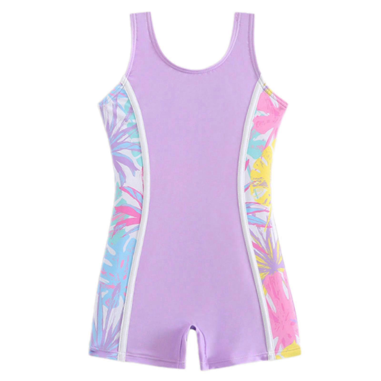 Kids Girls 1 Piece Swimsuit Tankini Sleeveless Bathing Suit Toddler Girl Swimming Costume Quick Dry Athletic Swimwears Purple 7Y