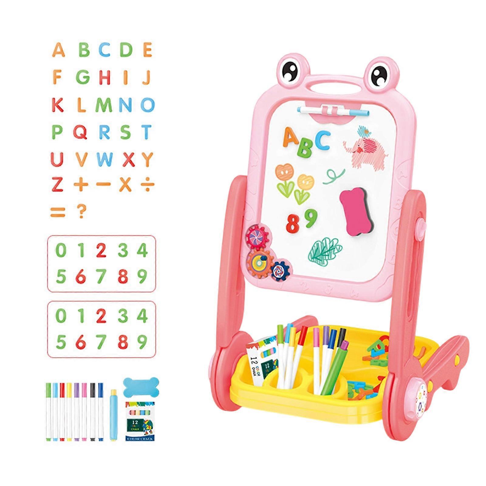 Reversible Magnetic Art Board With Frogs Shape Stand WhiteBoard Chalk Board Creative Writing Toy For Preschooler Kids Pink