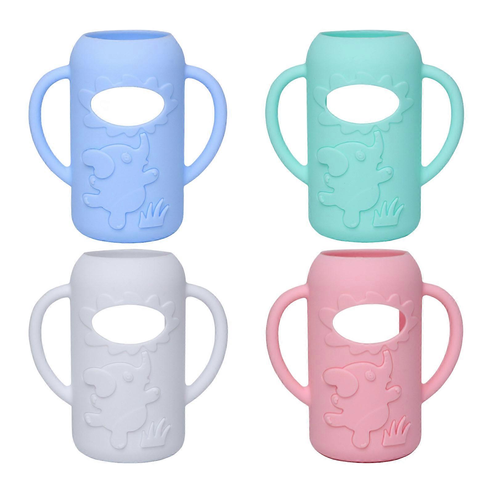 4PCS Silicone Protective Cover Case for Dr. Brown 120/250ml Glass Baby Feeding Bottles Shockproof Easy Grip Handle White pink blue gree S