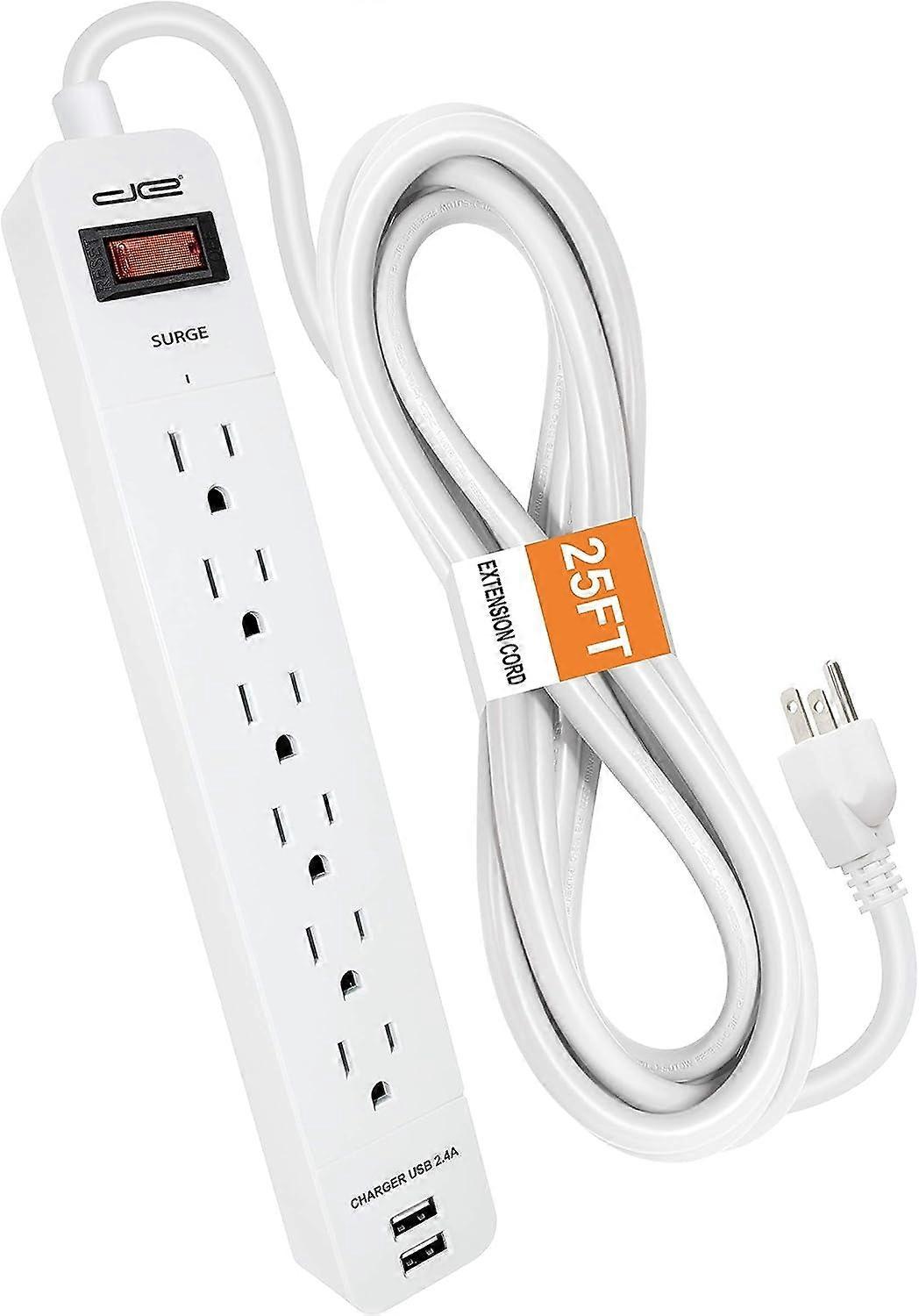 6-Outlet + 2 USB 1050 Joule Surge Protector Power Strip with 25-Ft Long Extension Cord, White , UL
