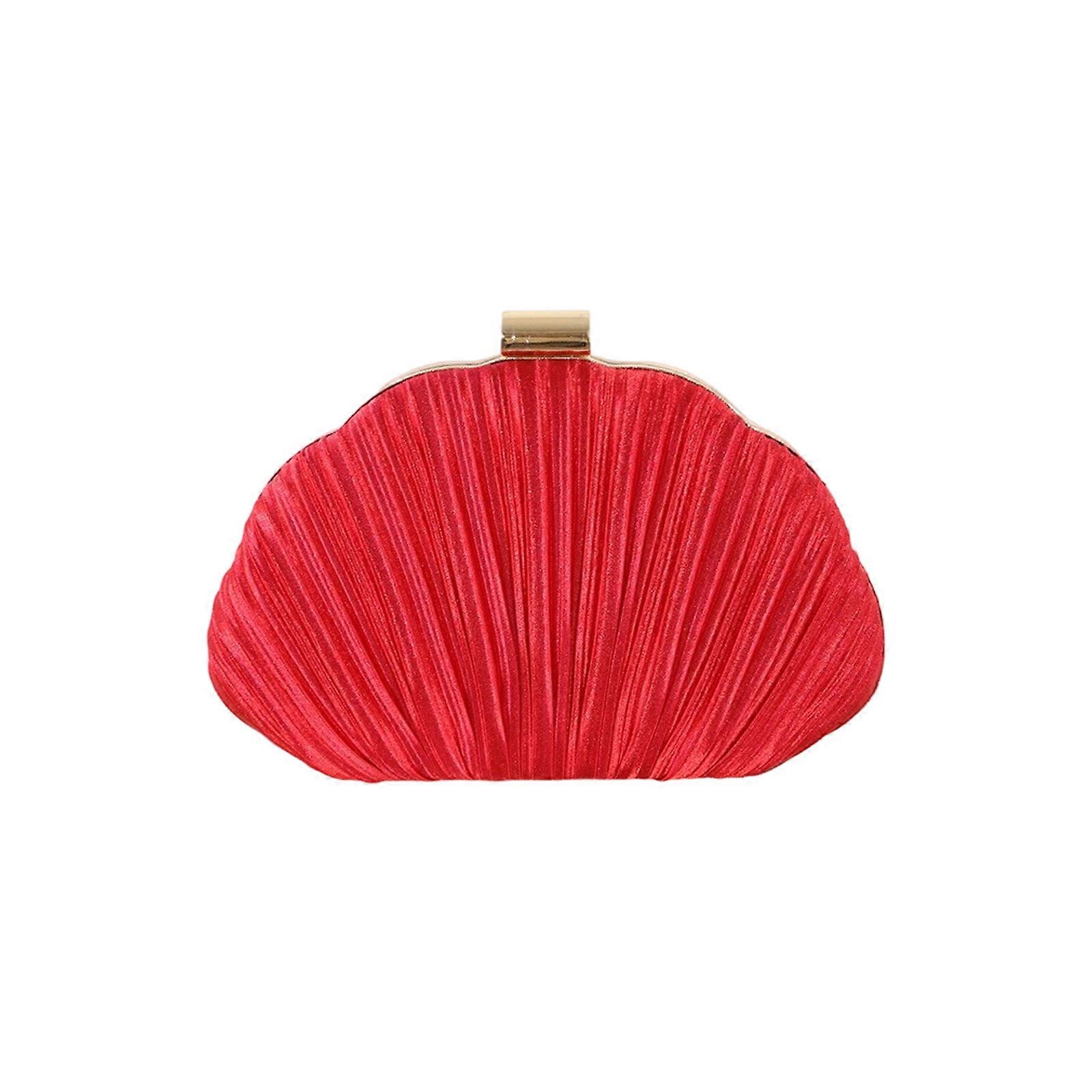 Seashells Clutches Purses for Women Evening Bag Pleated Clutches Bag with Chain for Wedding Party Crossbody Shoulder Bag Red
