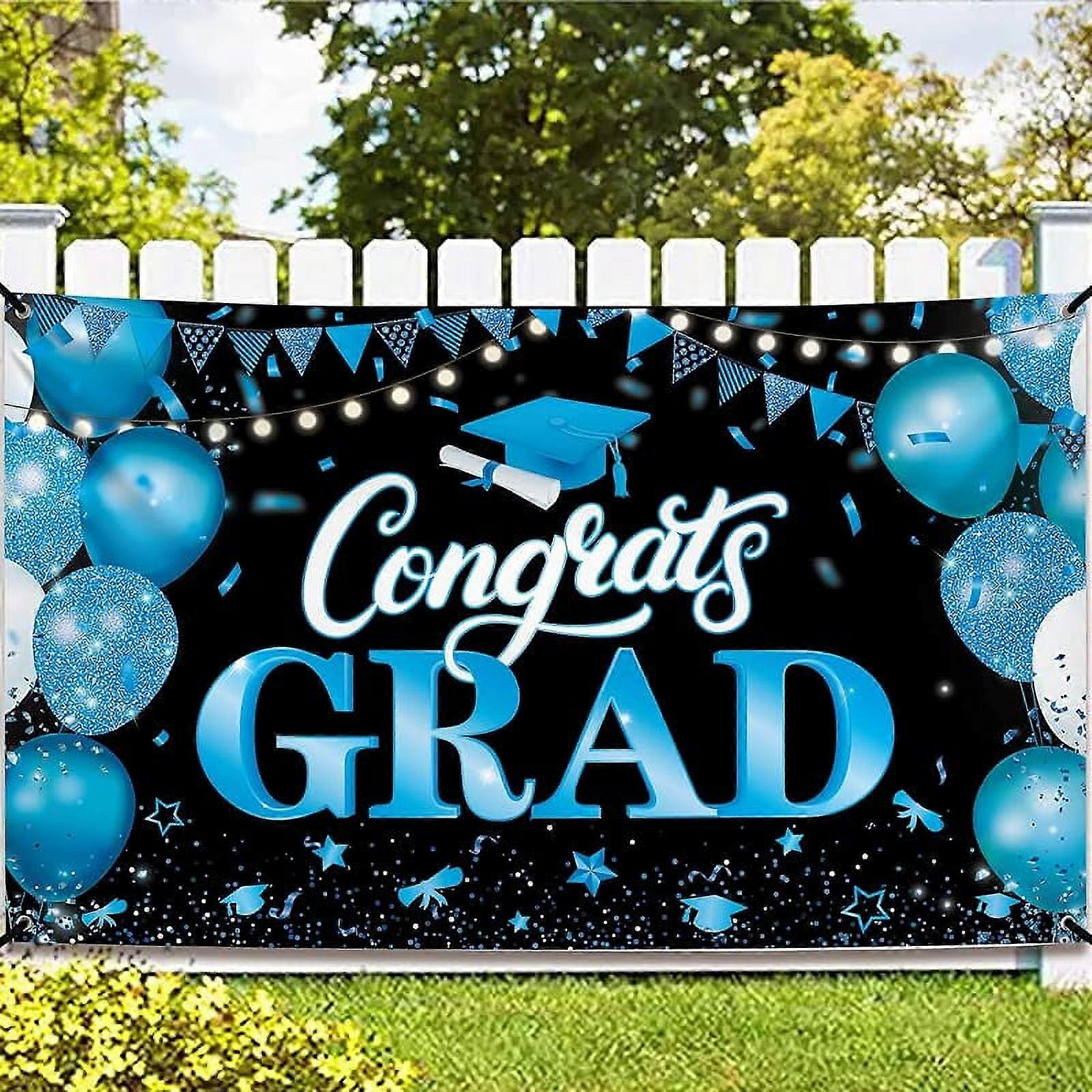 Congrats Grad Banner 72x44 Inch, Congratulations Class of 2024 Graduation Banner, Green Black Decorations