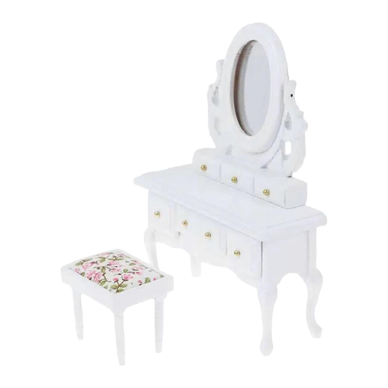 Enthusiast Grade 1/12 Scale Mini Furniture Wooden Dresser Stool Set Detailed Traditional Design Multicolor