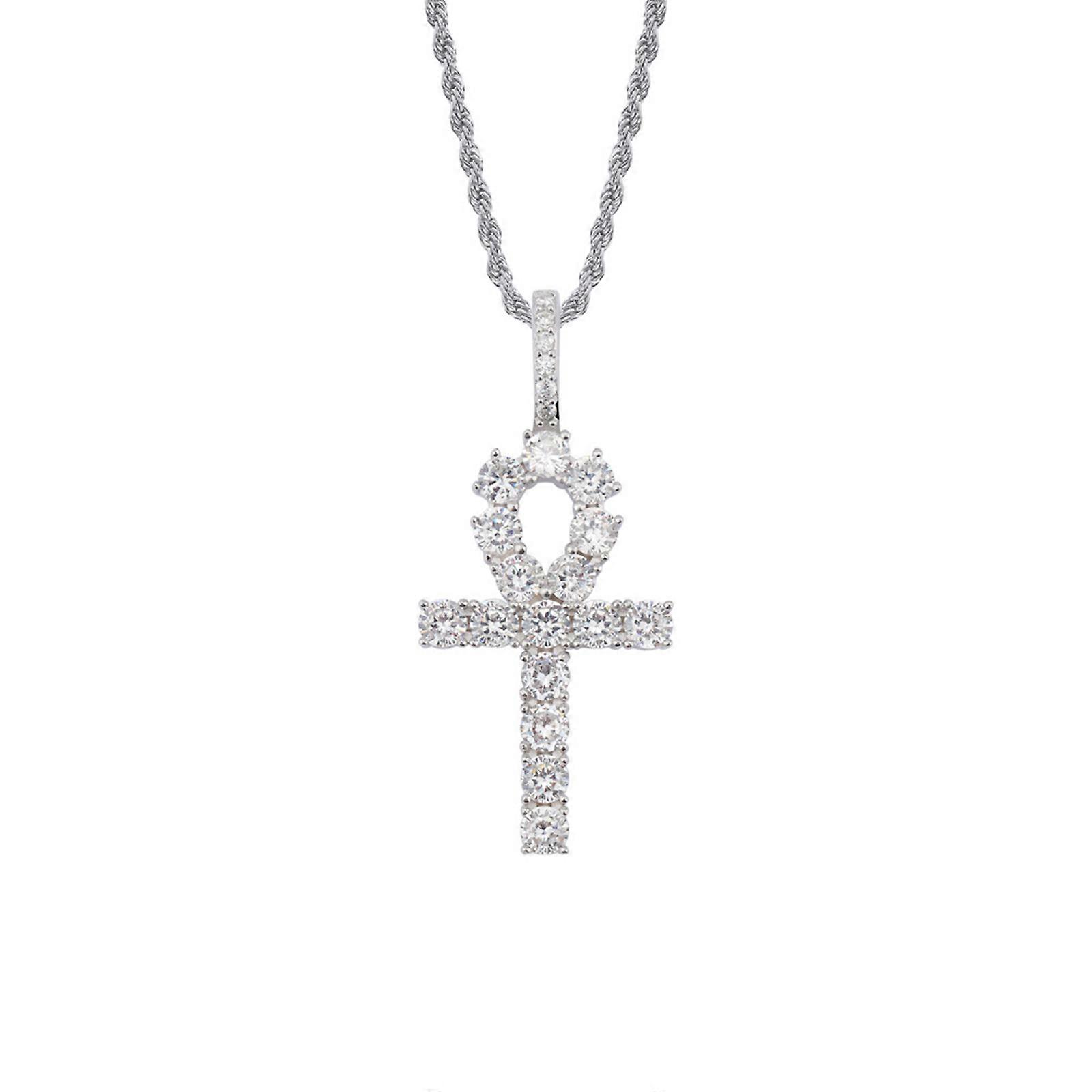 Versatile Hip Hop Crucifix Pendant Necklace Contemporary Silver Neckchain Jewelry With Cubic Zirconia Accent Multicolor