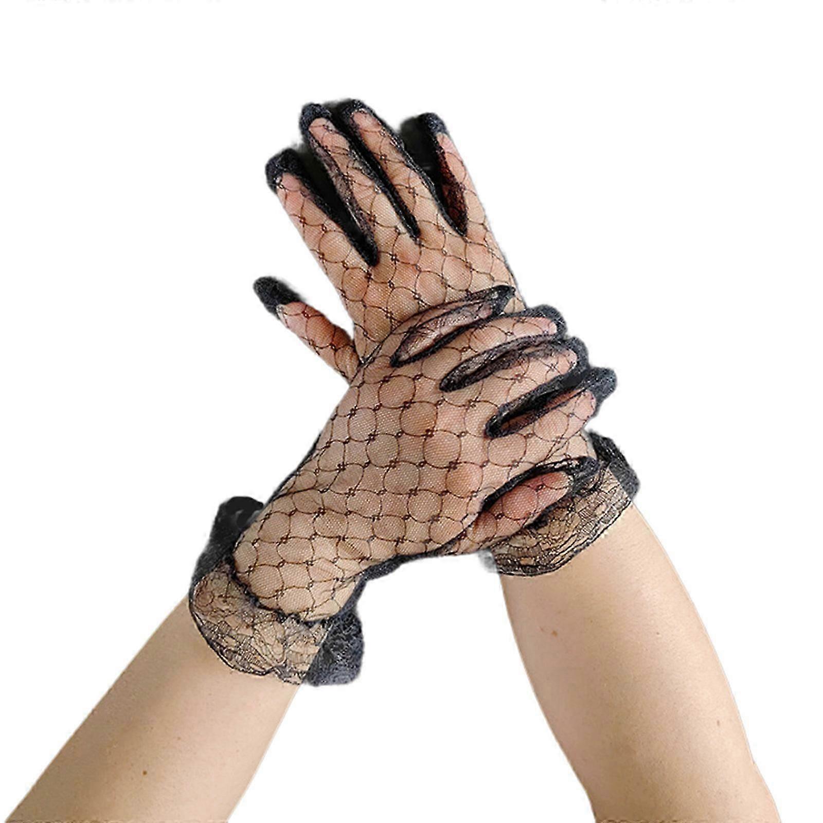 Lady Evening Banquet Gloves Elegant Full Finger Gloves 1920s Flapper Black Lace Bridal Wedding Gloves for Bridal Wear Red