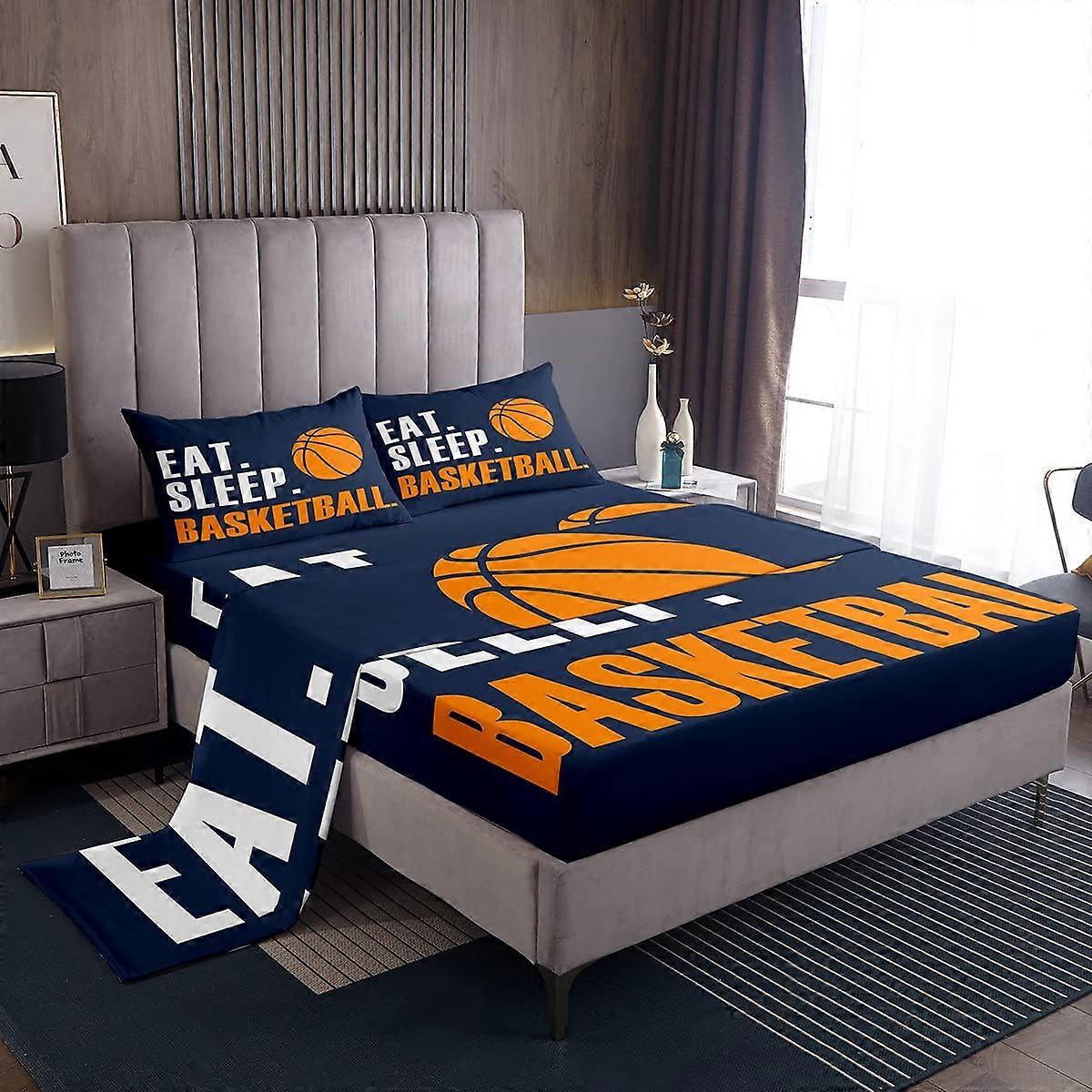 Basketball Bedding Set 3D Sports Ball Sheets for Boys Girls Adults Blue Full Size 4Pcs Deep Pocket Fitted Sheet