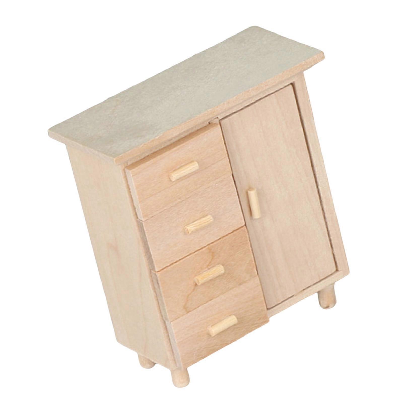 4 Drawer Vintage Dollhouses Cabinet 1/12 Scale Chestnut Wooden Storage Unit Mini Furniture Log Color