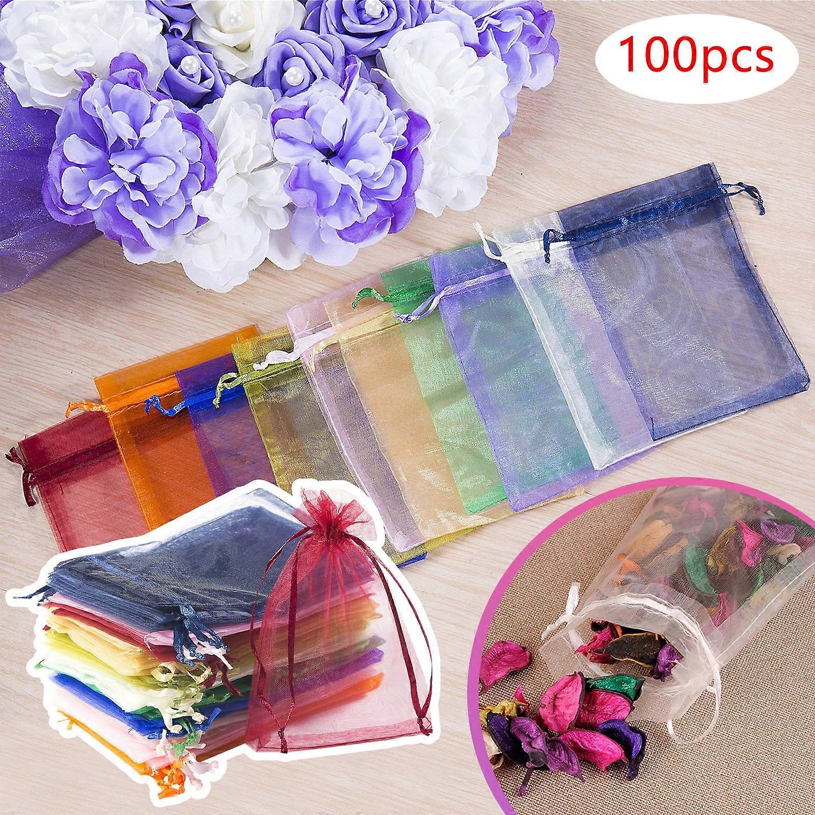 100Pcs 4x6 Inch Organza Gift Bags, Multicolor Drawstring Pouches for Wedding Favors, Party, Festival, compatible with small soaps & gifts