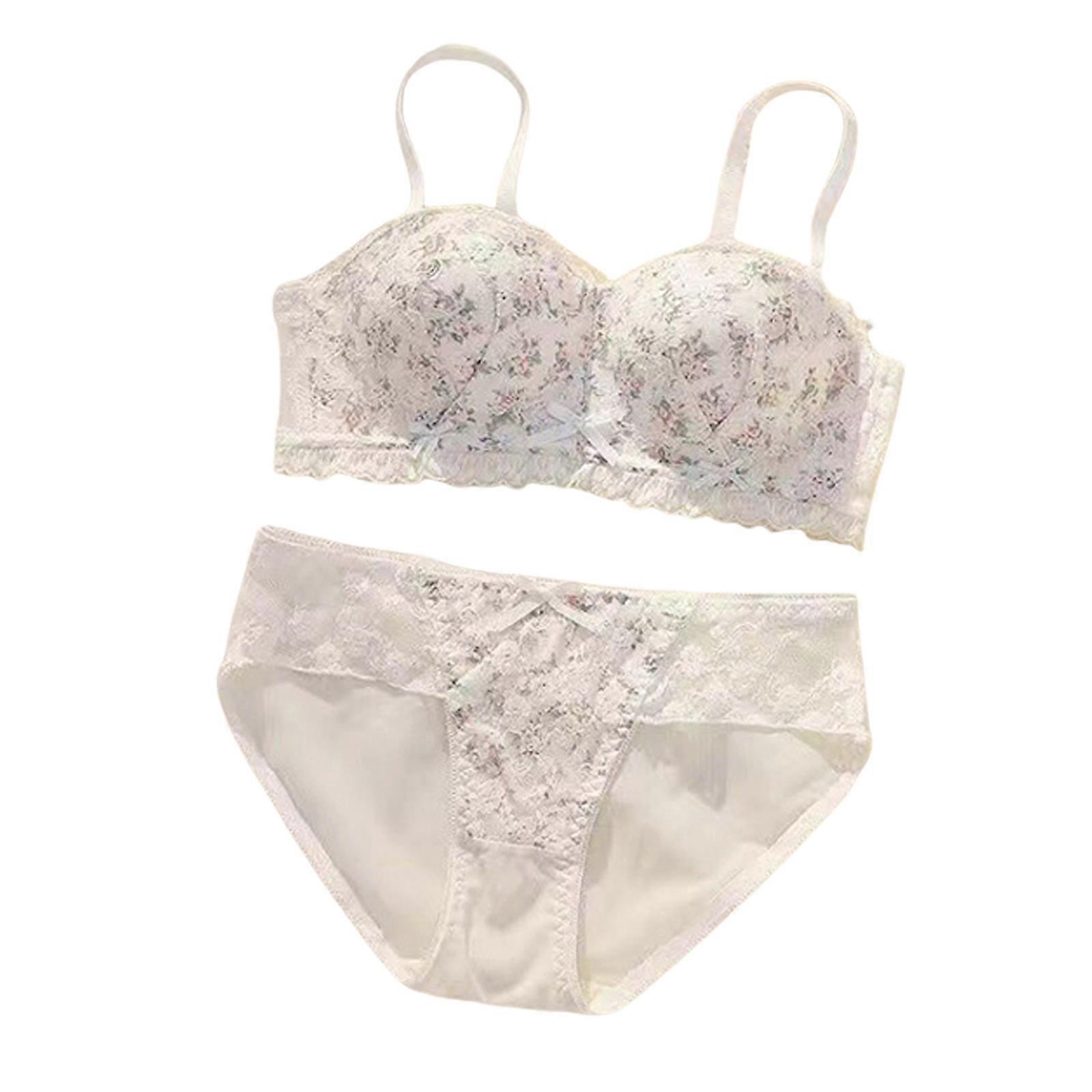 Features: This lace floral bra set features a wireless construction with clever shapeing to enhances curves naturally while ensuring comfort through its stretchy spandex blend. Craft from breathable spandex, the set combines delicate floral print with lace panels and sweet bows accents for a blend of sensuality and support in a Japanese styles minimalists design. Ideal for fashion forward women seeking everyday elegances, this Japanese styles lingerie set caters to those who value both styles and subtle lift without restrictive underwires. Suitable for casual outings or romantics evenings, its adjustable straps and half cup design pairs effortlessly with dresses, summer top, or intimates occasion requiring discreets sophistication. The seamlessly edge stitching ensure secure coverage, while the matching briefs complete the 2 piece set with coordinated lace detailing for a unifies aesthetic. Specifications: Component: Spandex Color: Champagne/Black/White Optional Size: 70AB/75AB/80AB/85AB Size:70AB Under Bust:65-70cm(25.59-27.56inch) Size:75AB Under Bust:71-75cm(27.95-29.53inch) Size:80AB Under Bust:76-80cm(29.92-31.50inch) Size:85AB Under Bust:81-85cm(31.89-33.46inch) Package Includes: 1pc Bra and 1pc Panties note: Please allow 1-3cm error due to manual measurement. please make sures you do not mind before you bid. Due to the differences between different monitors, the picture may not reflect the actual color of the item.