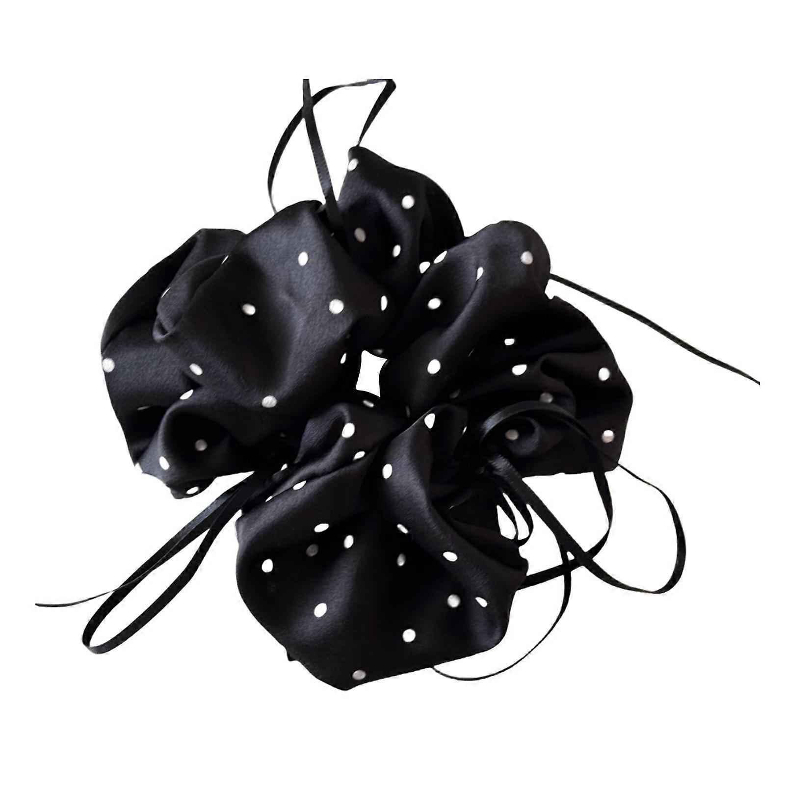 Stretchable Round Dot Ballet Bowknot Hair Rope Hair Accessory Black White Elastic Hairband Props For Daily Use Black