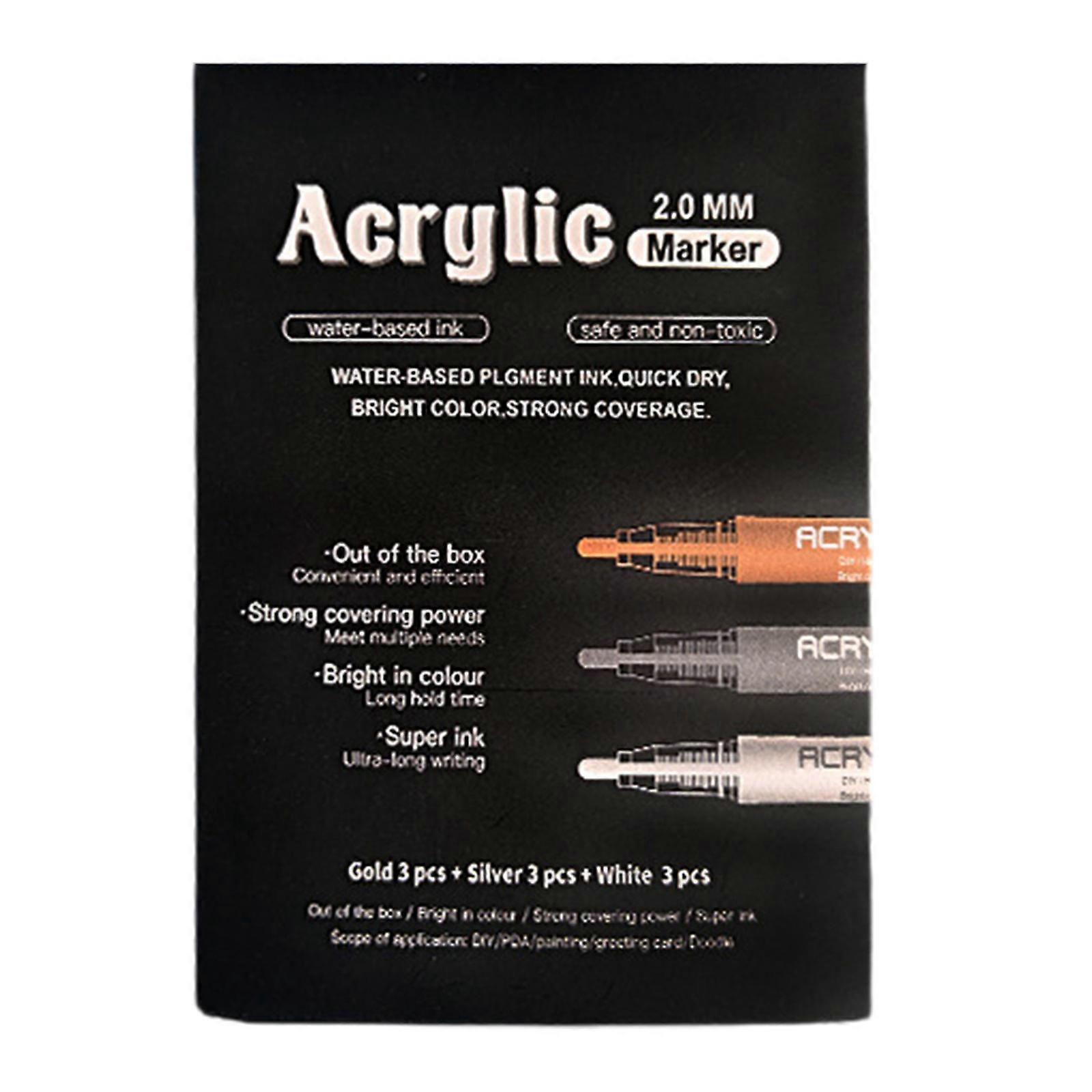 Plastic Metallic Acrylic Markers Set Of 9 Gold Silver White Waterproof Highlight Pen For Layered Artwork Night Drawing Multicolor