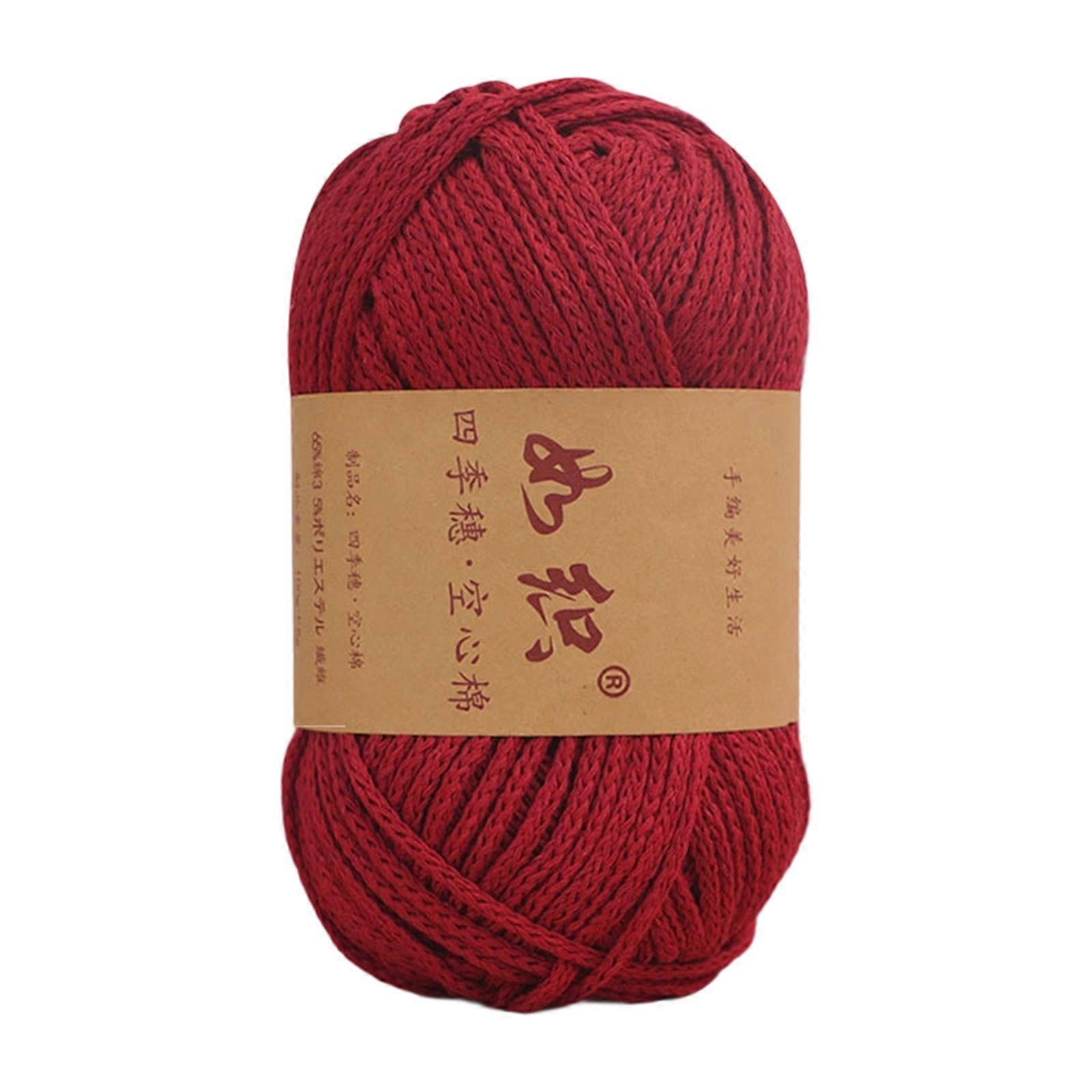 92.95Yardx2mm Hollow Cotton Yarn Thread 100g Per Roll Knitting Yarn for Weaving Scarves Hat Blankets Knitting Project Wine red