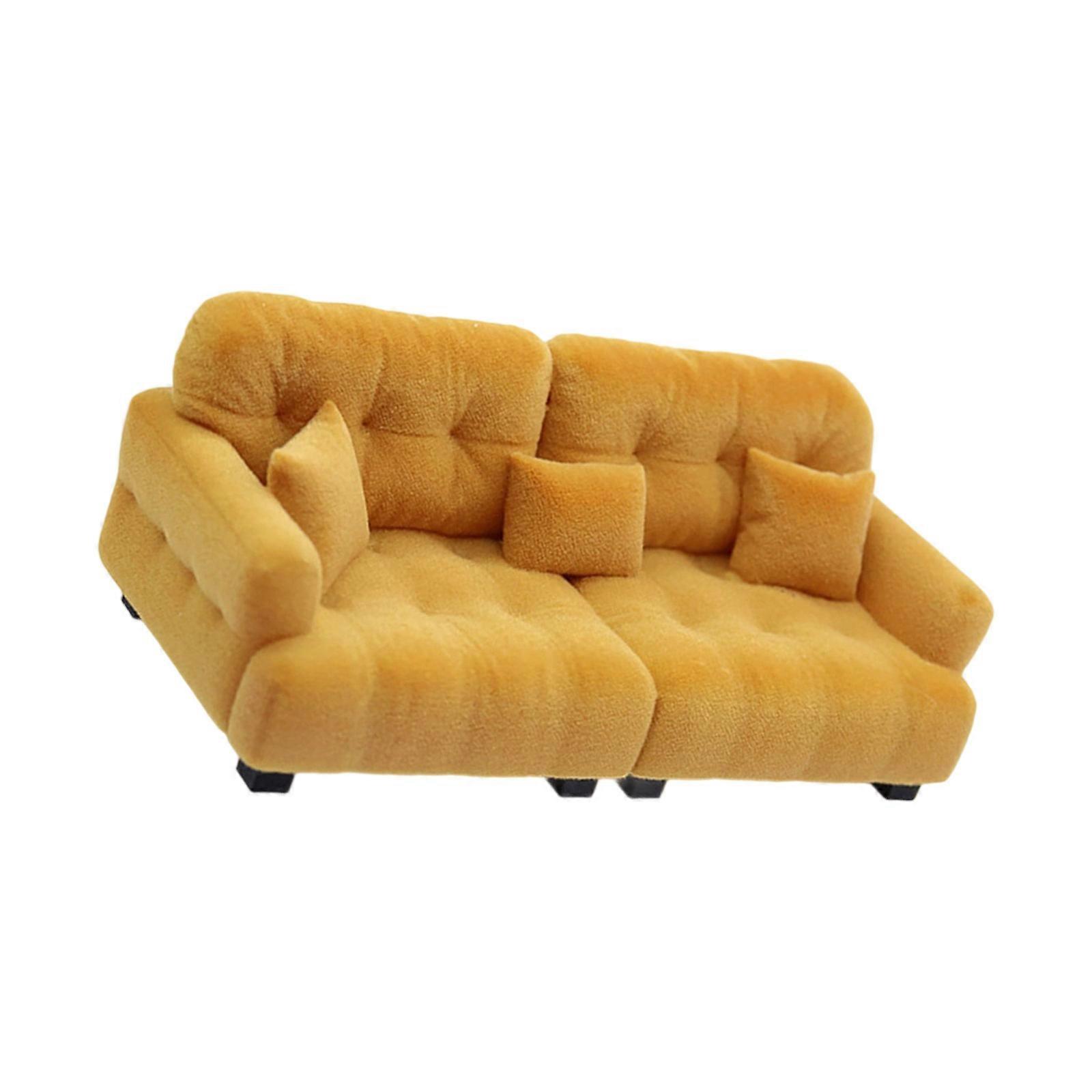 Miniature Dollhouses Sofa Couch 1/12 Scale Handcrafted Flocking Furniture For Living Room Bedroom Yellow