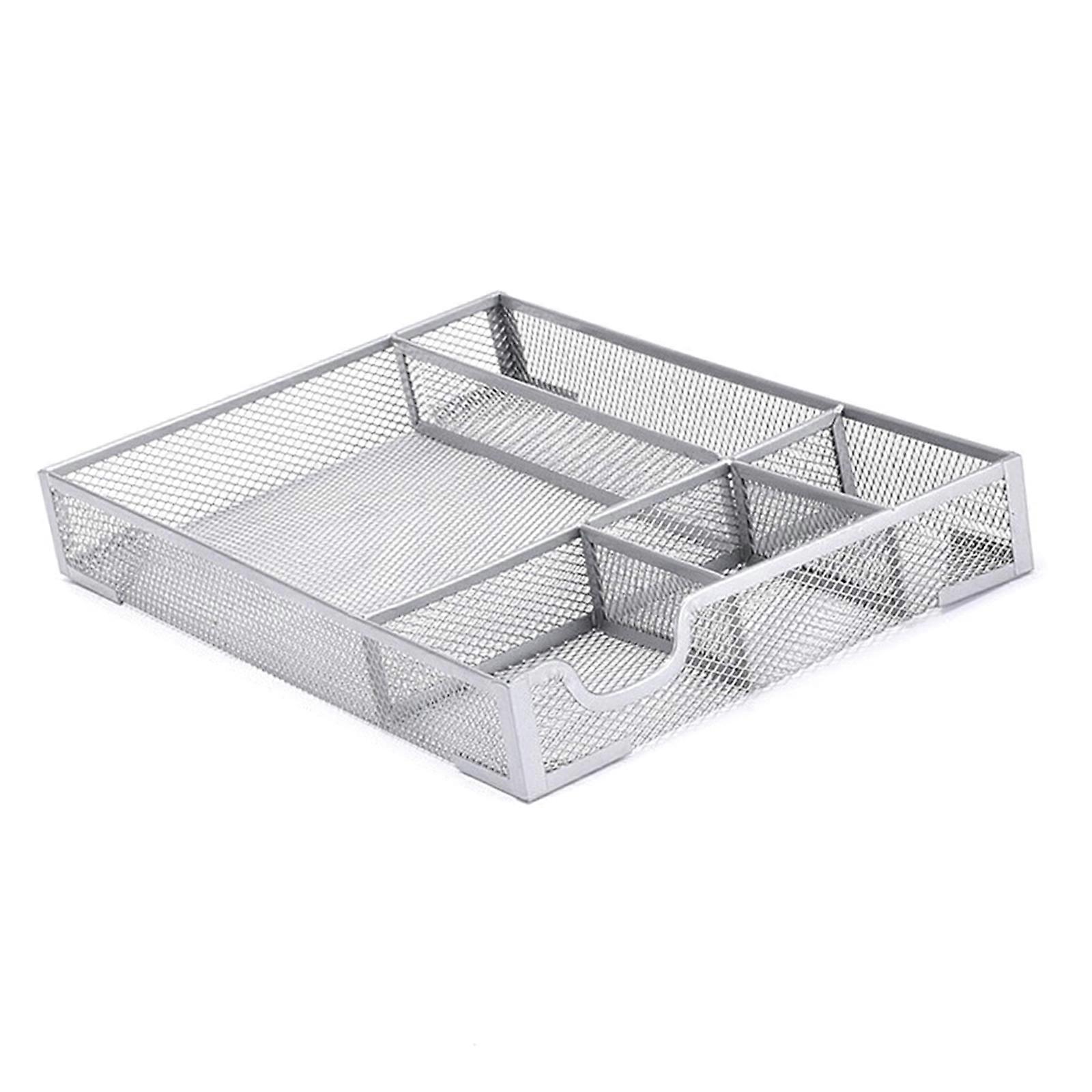 Strong Metal Net Storage Tray For Kitchen Utensils Office Materials Against Slip Base Desktop Organization 6001 silver