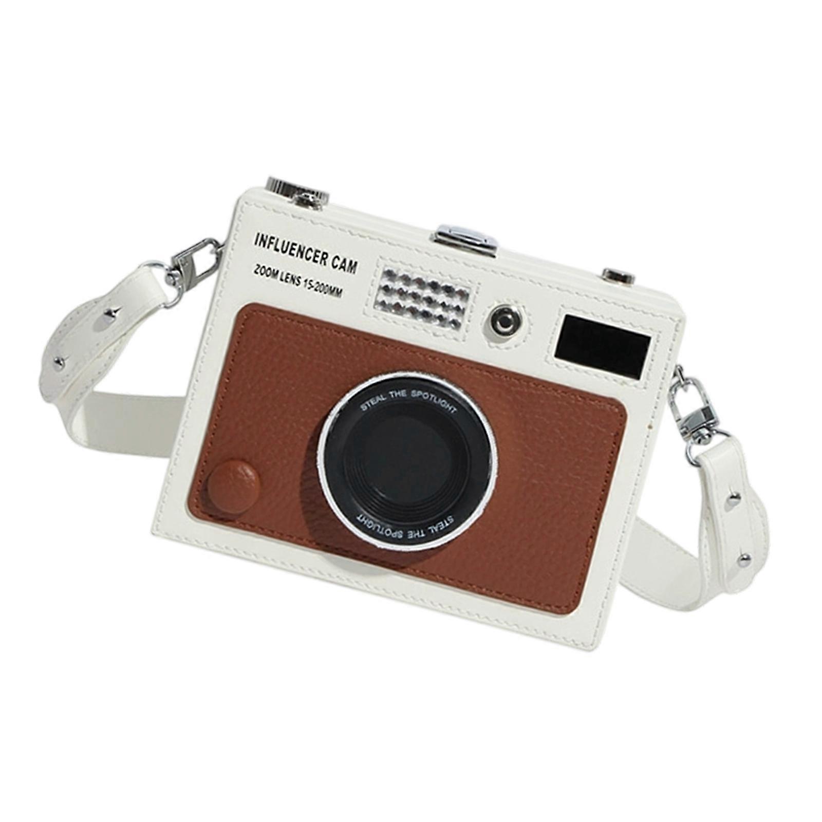 Fashionable Camera Shaped Shoulder Bag Women’s PU Leather Accessory Compact Lightweight Adjustable Strap For Daily Essential white brown