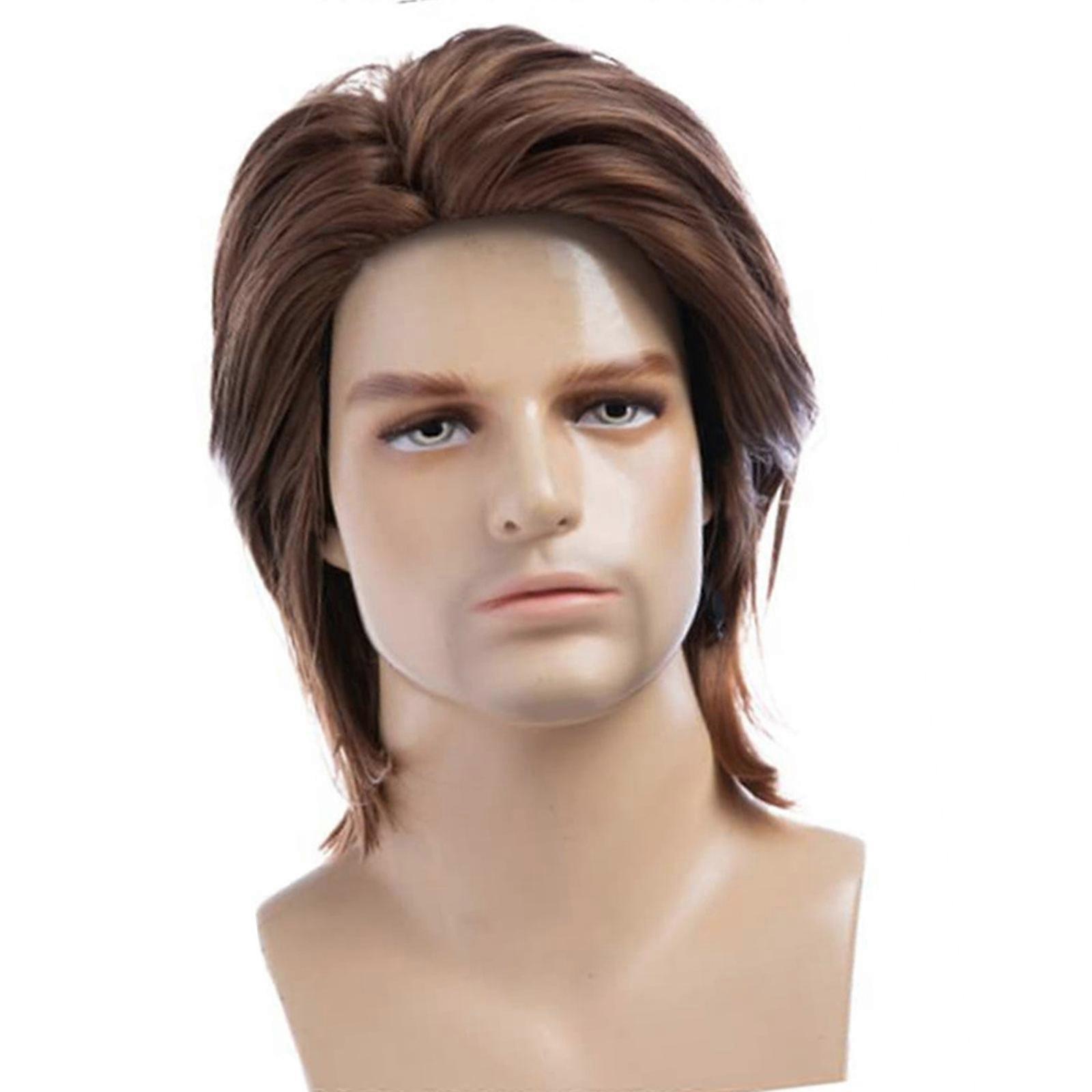 Ventilated Men's Synthetic Hairpiece Brown Middle Length Fashion Heat Resistant Substance Modifiable Inner Net Multicolor