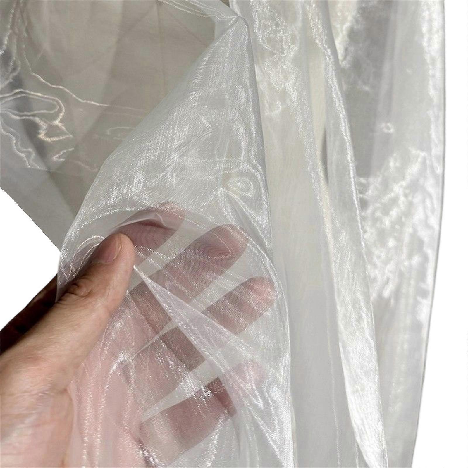 Metallic Color Sheer Organza Fabric 50x140cm Gradient Color Dressmaking Fabric For Evening Gowns Costume Sewing Cloth Glossy white