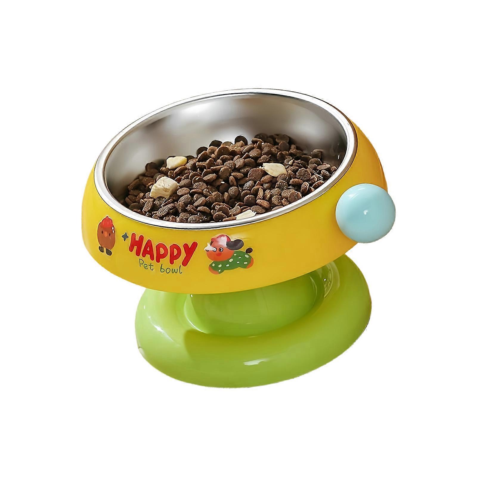 Height Adjusted Rustless Pet Bowl Canines Not Slip Feeding Station Low Maintenance Dishwasher Safe Yellow