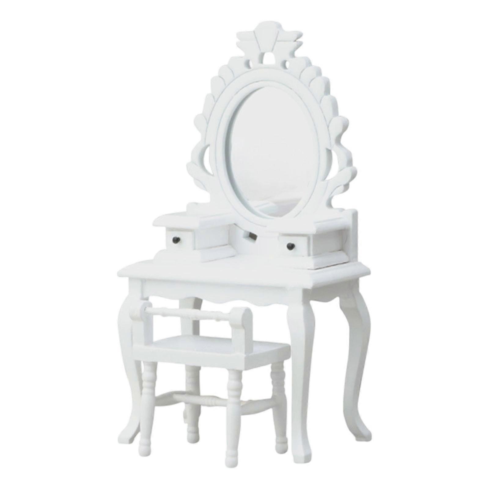 Enthusiast Grade 1/12 Scale Mini Furniture Wooden Dresser Stool Set Detailed Traditional Design White