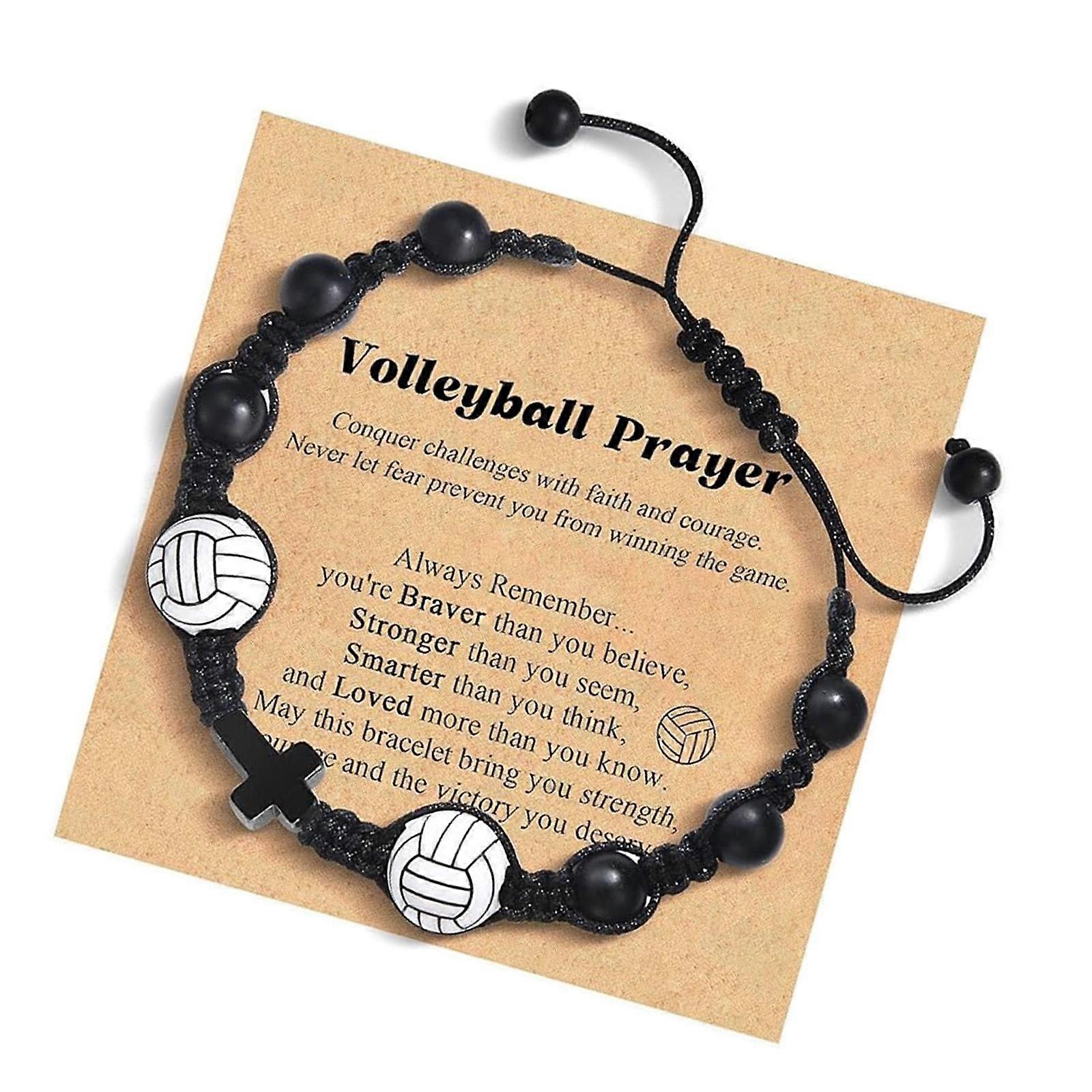 Sports Themed Wooden Crucifix Bracelet For Men Natural Wood Beads Black Woven Cord Inspirational Jewelry Gift Multicolor
