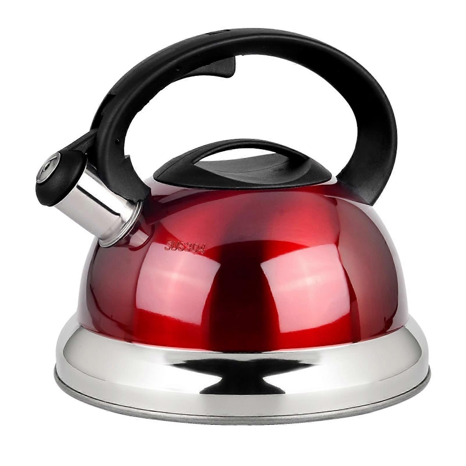 Tea Kettle 3.2 Quart Red Whistling Stainless Steel Stovetop Teapot with Cool Grip Handle for All Cooktops