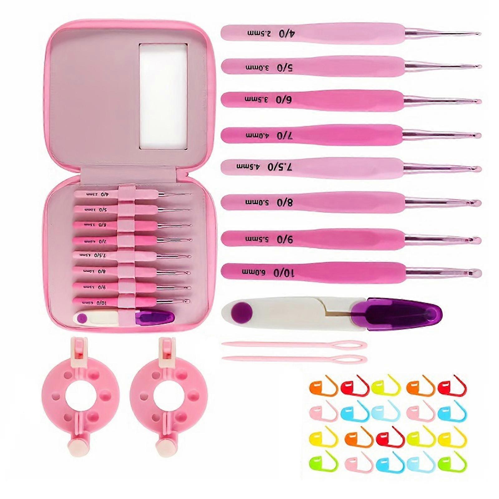 9Pcs Aluminum Crochet Hook with Soft Ergonomic Handle 2.0mm-6mm Includes Case And Knitting Accessories For Beginner Multicolor