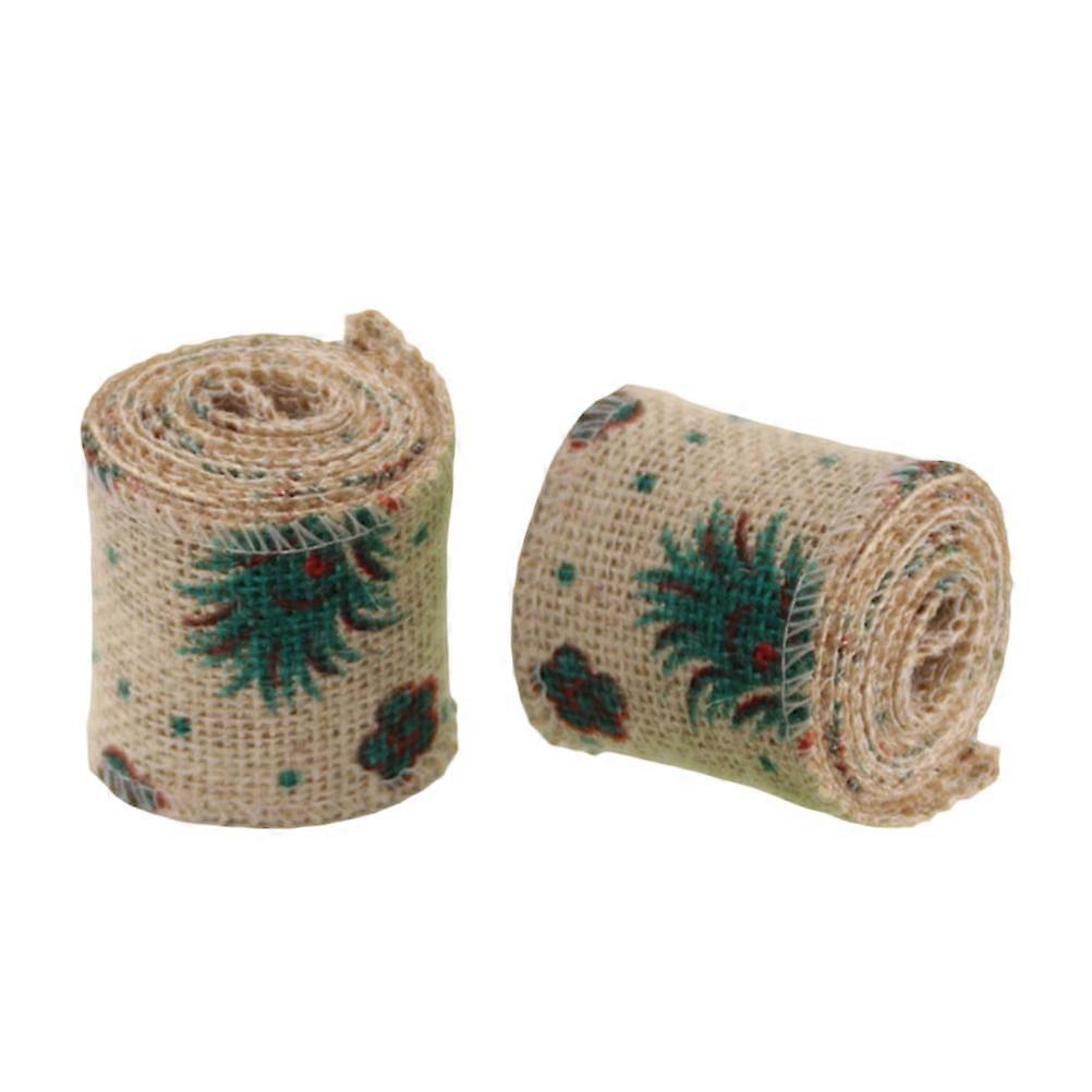 2pcs Christmas Burlap Ribbon Rolls Wrapping Packaging Decorating Crafting Linen Ribbons Holiday Decorations (Grass)