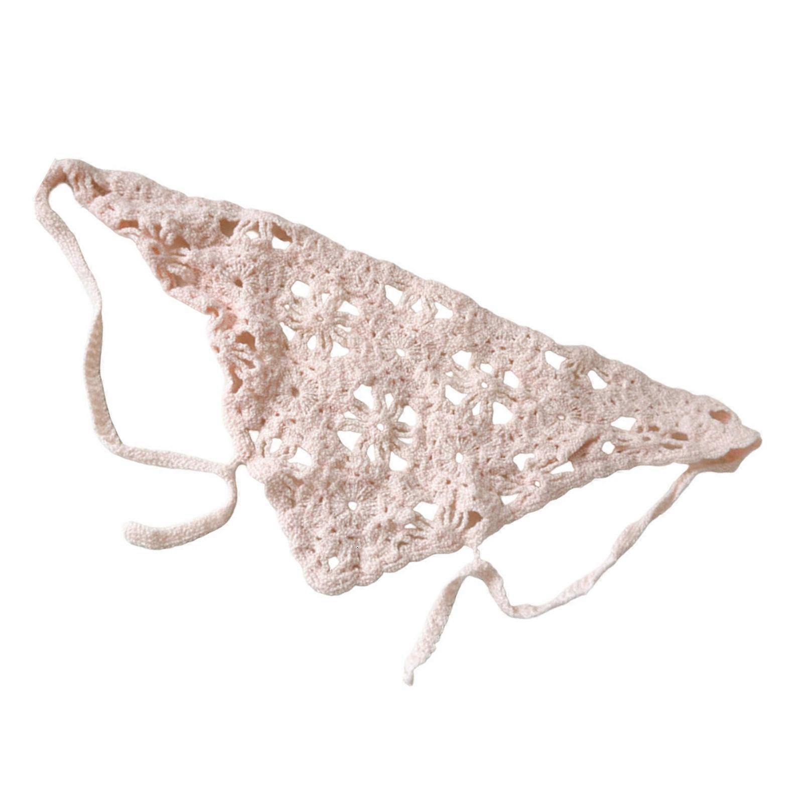 Knitted Floral Lace Head Cover Lightweight Bandana Scarf Bohemian Hair Accessory Beach Photography Prop Delicate Design Pink