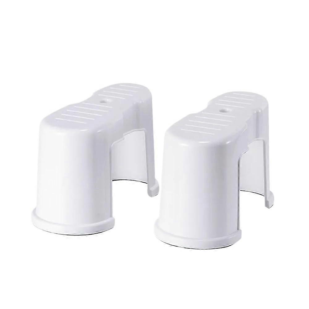 Plastic Footstool Set of 2 NonSlip Low Ottoman for Living Room Shoe Changing and Office Use White
