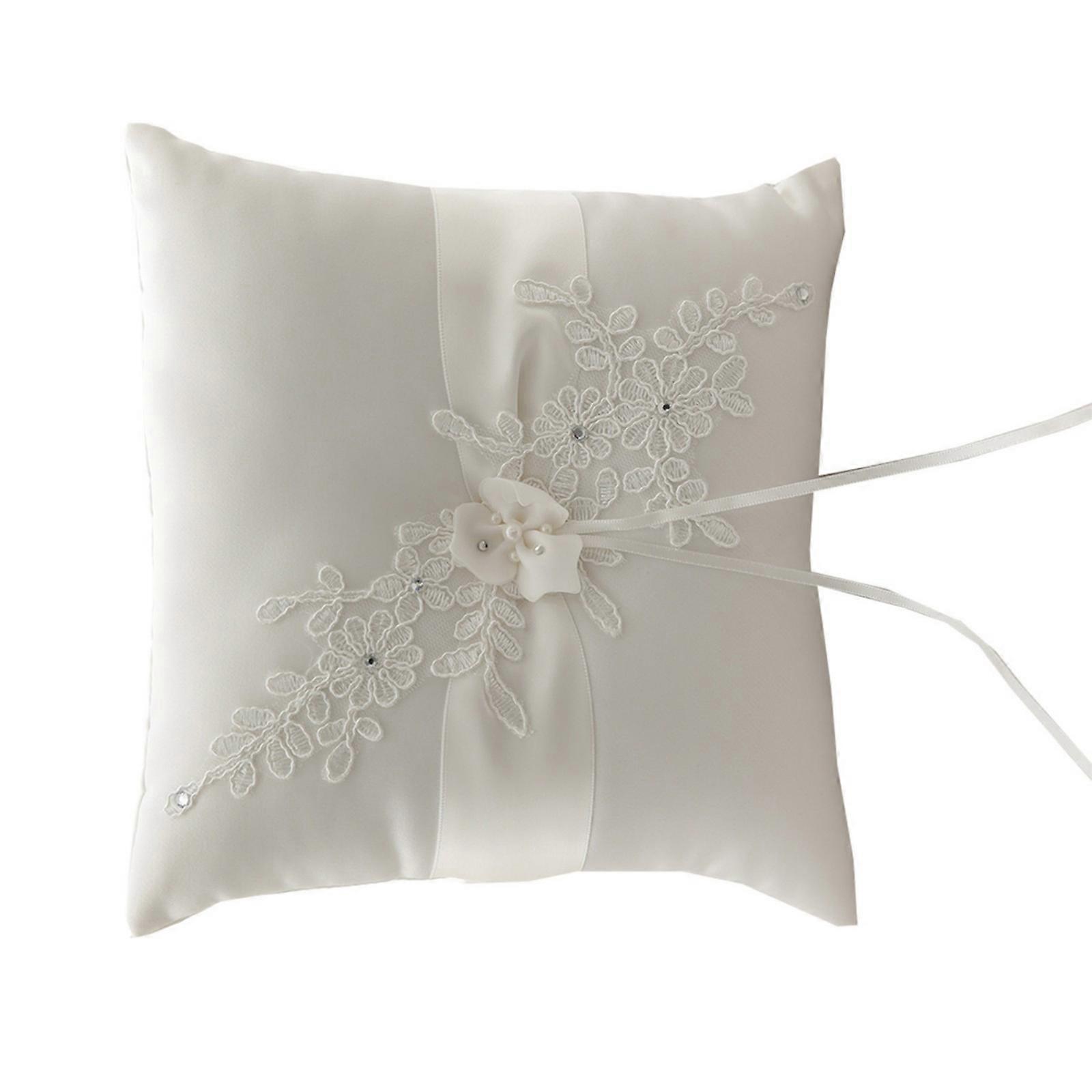 Elegant Lace Wedding Rings Pillow Decorative Bridal Accessory Embroidery Flower Rings Cushion For Ceremony Decoration Cream